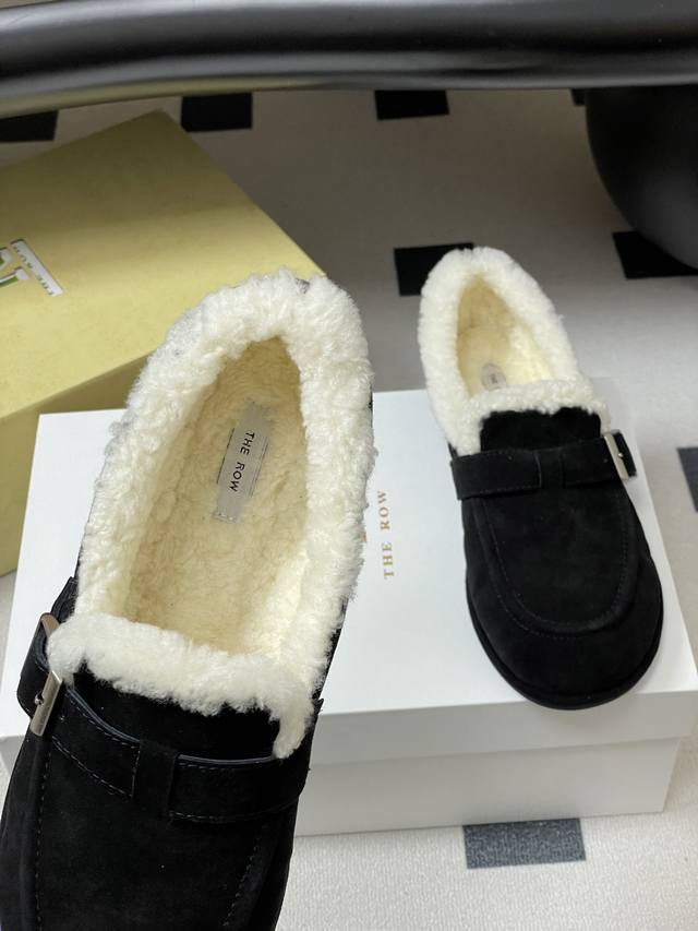 The Row25Ss Autumn/Winter New Tr Lambswool Mary Jane Flat Loafers with Buckle and Furry Finish DDD The upper is made of pure lambswool, stylish and gentle! The insole is made of imported soft lambswool, making the shoes incredibly soft and comfortable! A completely casual style, the shoes have a loose fit and are very versatile! Very friendly to all foot shapes! A must-have item for autumn and winter, warm, comfortable, and easy to match! DDD Upper: Lambswool DDD Insole: Wool for comfort and warmth DDD Outsole: Open-mold non-slip rubber outsole DDD Sizes: 35-39 40.41 Made to order, no returns or exchanges DDD