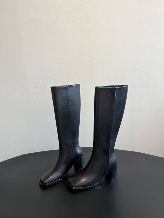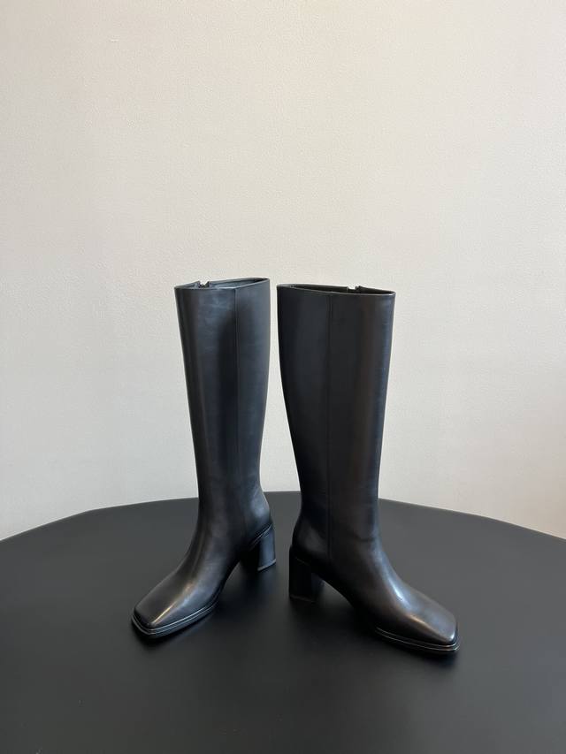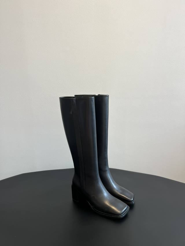 . The Row has never failed to create a sense of luxury. This pair of simple, capable, low-key and fashionable boots does not have bright colors or complicated designs. The 9cm thick heel and neat and fashionable square toe design can fully show the aura and high-end feeling.
