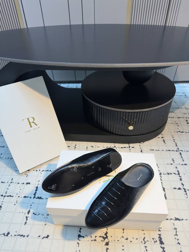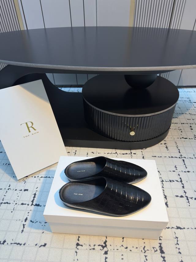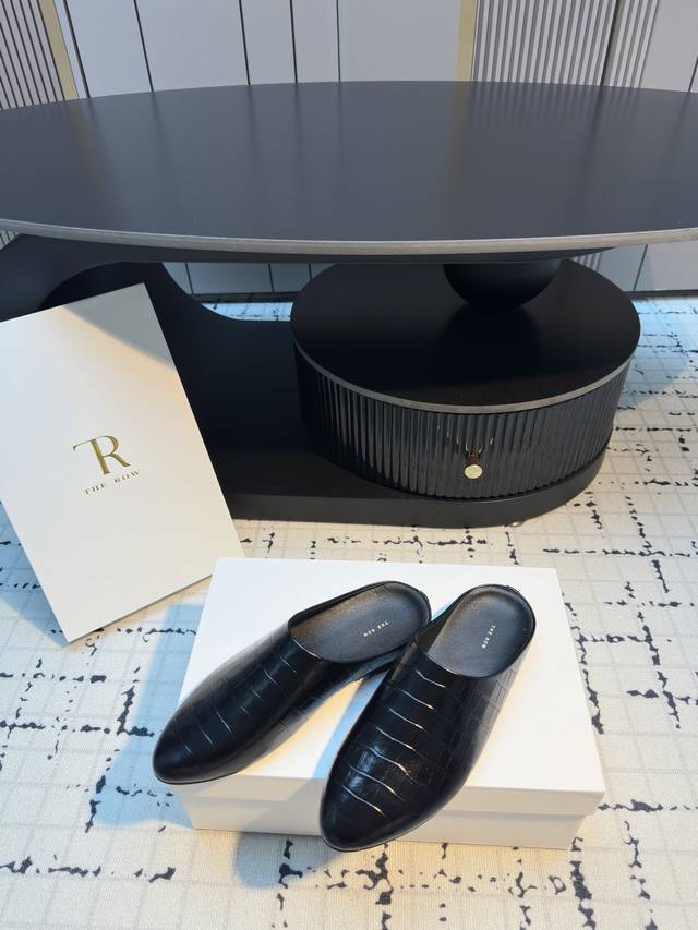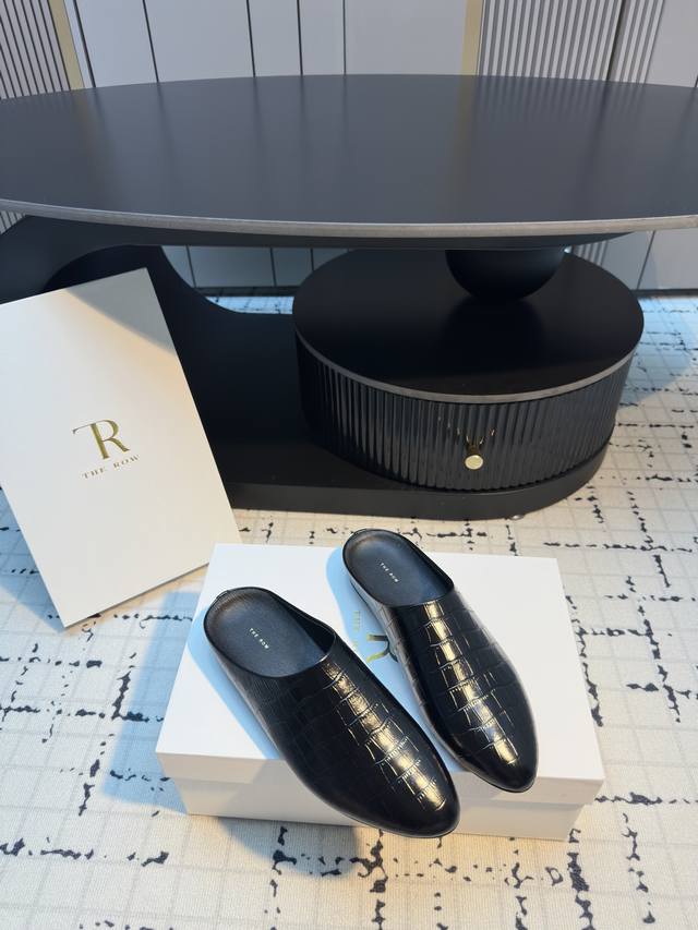 The Row's new Roman mule slippers! I fell in love with these shoes at first sight. They have a retro vibe and are effortlessly sexy and charming! Maintaining a minimalist style, there are no logo embellishments; simplicity is elegance. This style is quite forgiving; the imported cowhide leather is naturally stretchy, so it fits both narrow and wider feet. It provides excellent support, making it very comfortable and snug when walking. These slippers are perfect for long pants and skirts; the breathable mesh design is cool and subtly sexy. They're sophisticated, simple, and stylish, perfect for summer wear and very versatile. Highly recommended! Upper: Custom imported stone-patterned cowhide; Insole: Imported sheepskin; Outsole: Imported Italian genuine leather. Sizes : 35, 40, 40 (Made to order, no returns or exchanges) .
