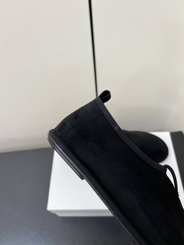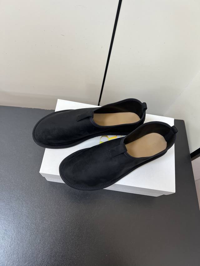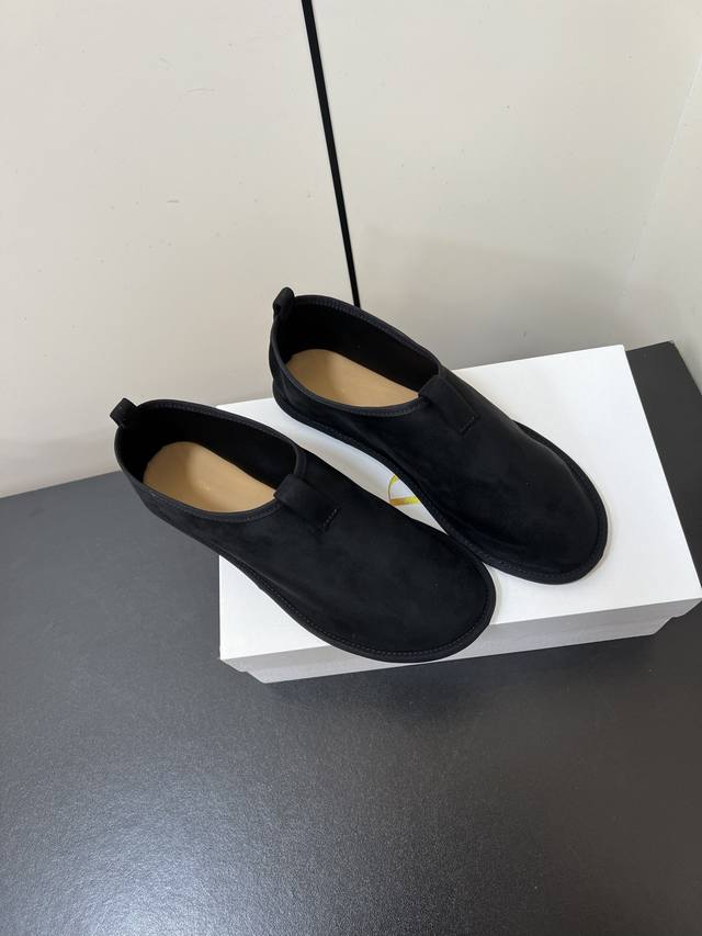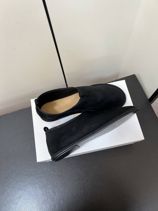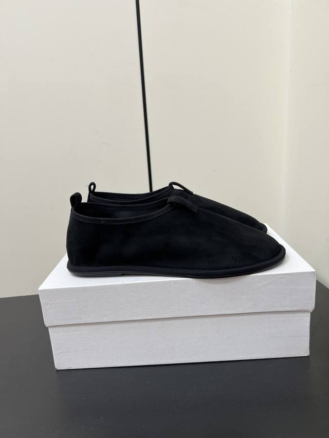 The Row's new unisex retro minimalist loafers. The round toe design ensures long-lasting comfort, adding a touch of elegance and chic to any look, whether paired with casual or formal attire. They offer a stylish and sweet touch. Whether walking or partying, they're the perfect companion. Upper: Imported Lycra overlaid silk. Footbed: Sheepskin. Sizes: 35-40. 40 is made to order and cannot be returned or exchanged.
