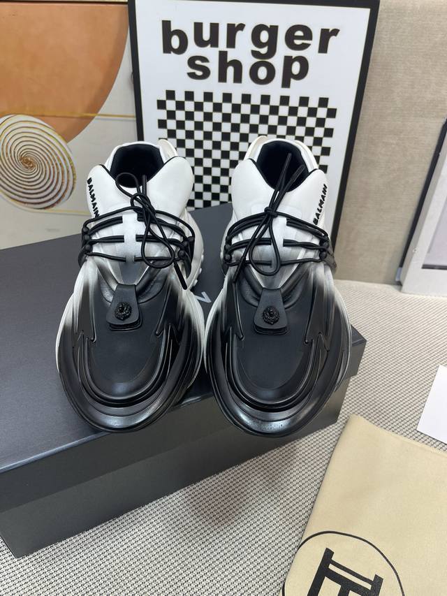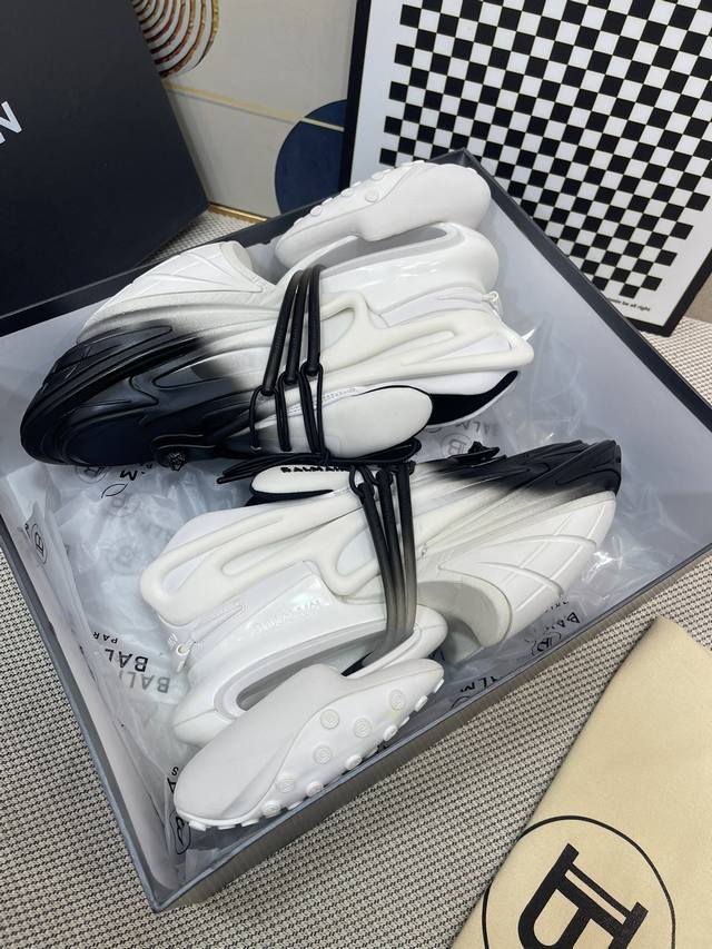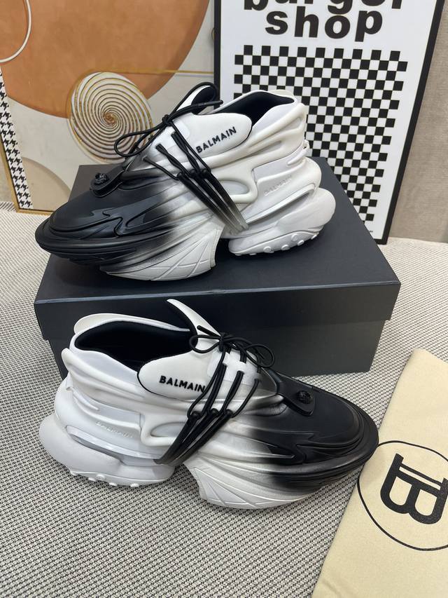 The top-of-the-line Balmain spaceship dad shoe, the Deep Sea Bomb, has launched with a bang. Its bold design and avant-garde styling have taken the fashion world by storm, sweeping across major social media platforms both domestically and internationally. Its hollow TPU foam outsole, with its exaggerated thickness, instantly elongates the legs. As French fashion philosophies and a famous quote from French fashion designer Pierre Balmain: Dressmaking Is The Architecture Of Movement. The art of clothing making is "walking architecture." He believed his mission was to beautify the world like an architect, and the close connection between architecture and fashion has been integrated and emphasized throughout Balmain's career.