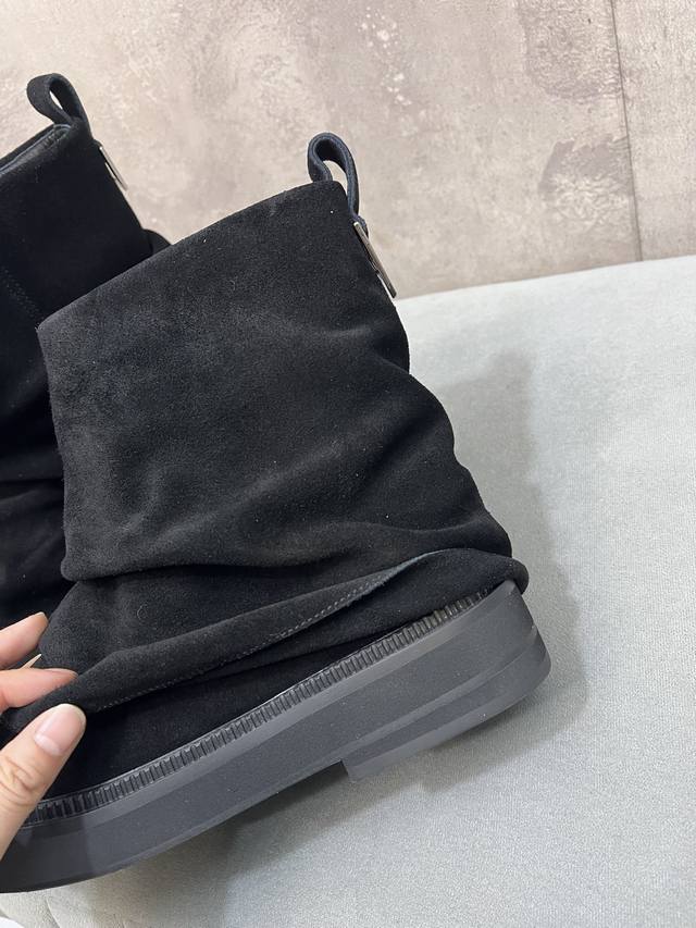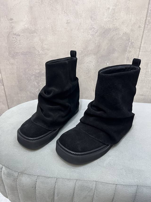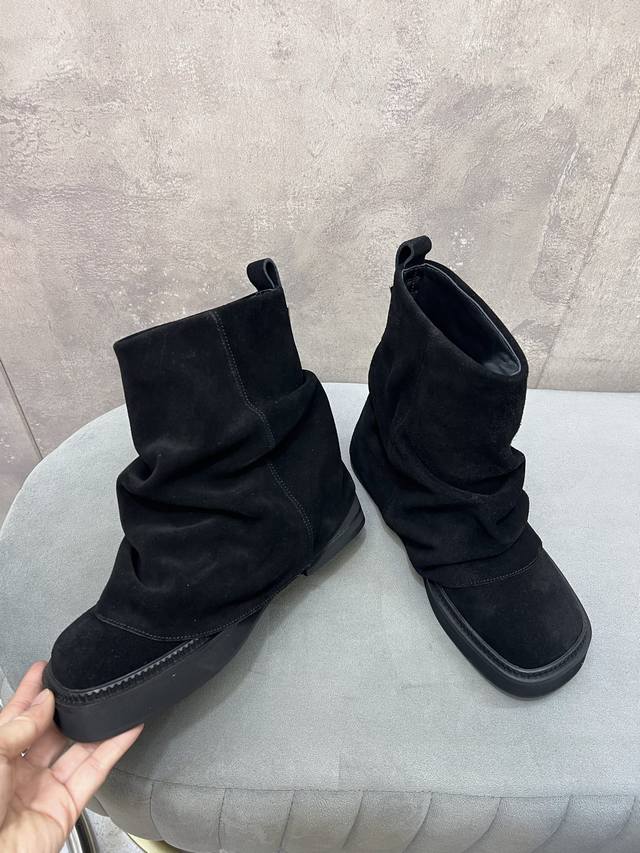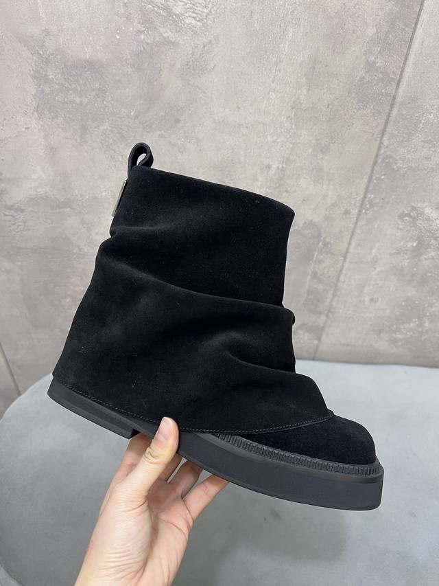 Theattico Autumn/Winter Collection Thick-Soled Pants Boots with Pleated Ankle Boots DDD Top-tier version, 1:1 replica DDD "Attico" means attic in Italian DDD Perfectly embodies luxury and fashion sense DDD The trendy and cool items launched each season never disappoint us DDD Art and design, architecture and aesthetics, clean lines exude a fashionable vibe DDD Cute yet sexy shoes are not only very fashionable DDD A sophisticated style, strong design sense, very beautiful DDD Cool but not sharp, fashionable but not vulgar DDD Upper: Cowhide suede DDD Lining: Imported cowhide DDD Heel: 4.5cm DDD Outsole: Imported Italian genuine leather outsole DDD Sizes: 35-41, 40.41 (fixed) DDD