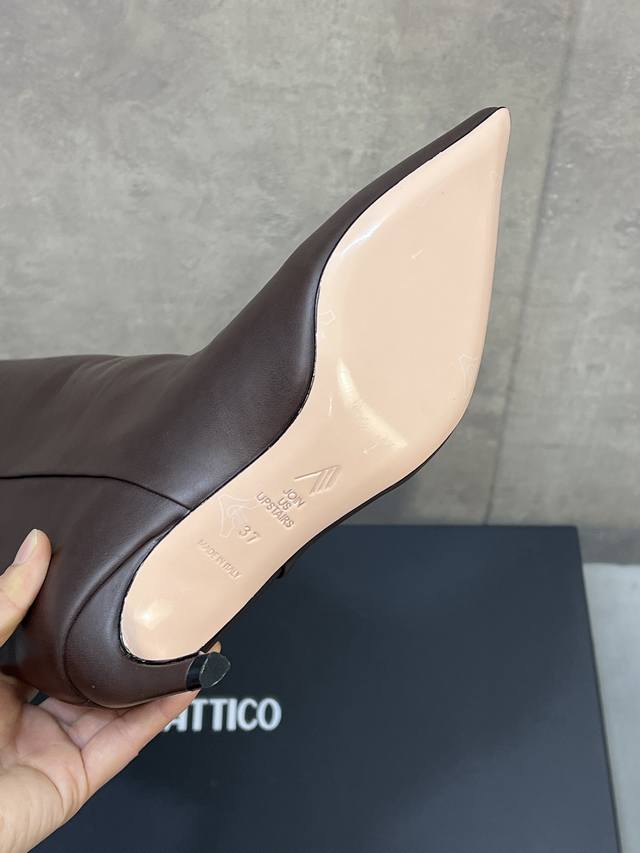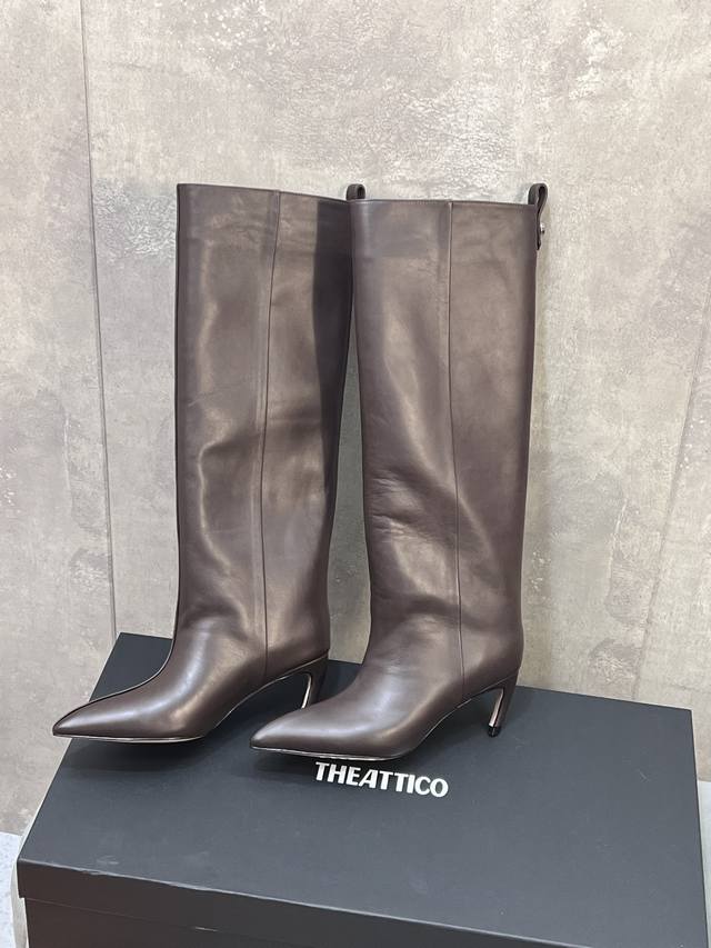 Theattico Autumn/Winter Pointed Toe Kitten Heel Long Boots/Wide Boots DDD Top-tier version, 1:1 replica DDD "Attico" means attic in Italian DDD Perfectly embodies luxury and fashion DDD The trendy and cool items launched each season never disappoint us DDD Art and design, architecture and aesthetics, clean lines exude a fashionable vibe DDD Cute yet sexy shoes are not only very fashionable DDD A sophisticated style, strong design sense, very beautiful DDD Cool but not sharp, fashionable but not vulgar DDD Upper: Cowhide suede DDD Lining: Imported cowhide DDD Heel: 5.5cm DDD Outsole: Imported genuine leather outsole DDD Sizes: 35-41, 40.41 (fixed) DDD