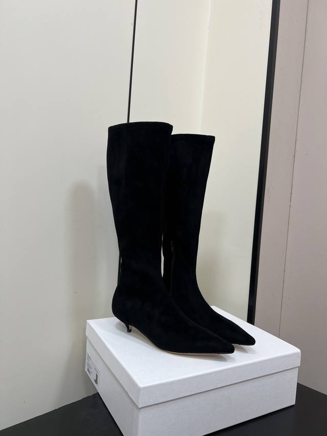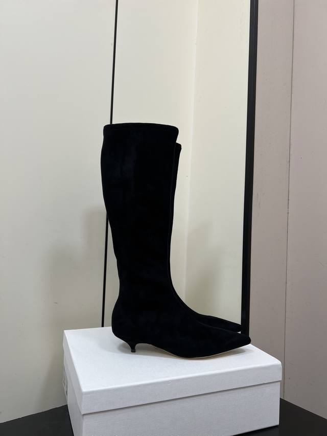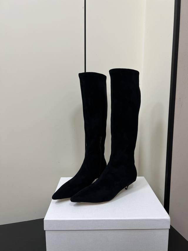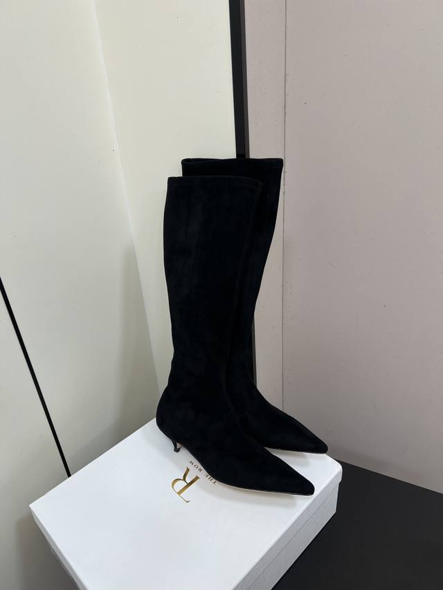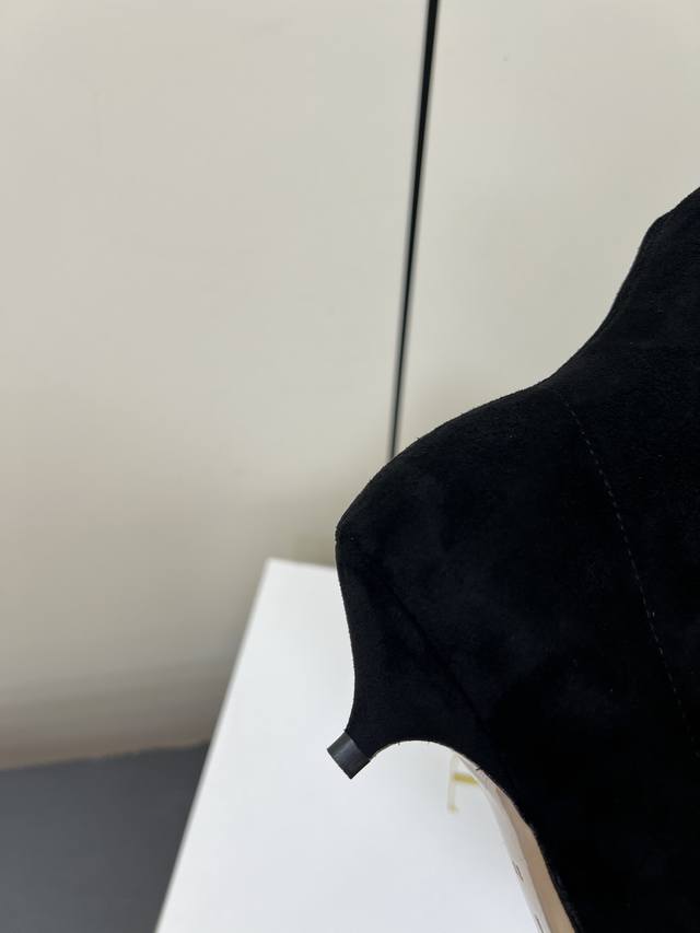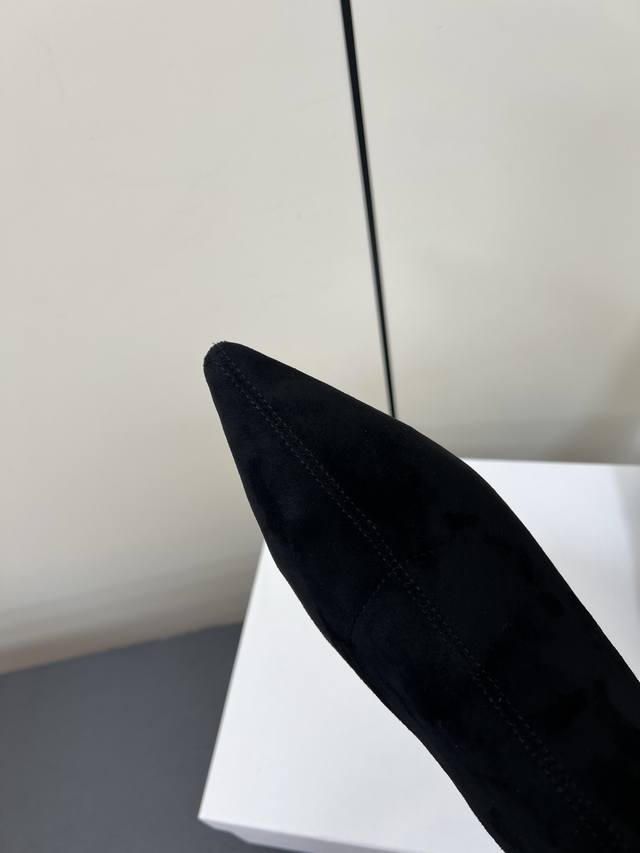 Therow New High-Heeled Elastic Boots, Slim Fit High Boots. Made with a suede-like material, these boots have a delicate texture. The slim-fitting short boot design features a side zipper for easy on and off, and fits the ankle perfectly. The pointed toe adds a touch of sophistication; the stiletto heel enhances the overall elegance and feminine charm. They can be paired with black skinny jeans or a leather skirt, topped with a blazer for a sharp, professional look; or with a black velvet dress for a retro-chic evening style. Upper: Sheepskin Elastic Fleece; Lining: Sheepskin; Outsole: Genuine Leather; Size: 35-40 (40 is custom-made and non-refundable).