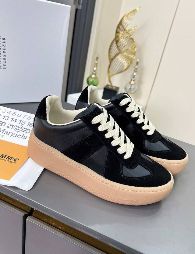 Thick-soled Maggie La German Training Casual Shoes, a brand of genius designers, a light luxury brand DDD This German training shoe continues the classic T-shaped genuine leather splicing design, after multiple careful improvements by the design team DDD Another wildly popular shoe, a 50cm height-increasing shoe, looks so good with wide-leg jeans, instantly giving you long legs. You can walk all day without getting tired, and the feel is amazing! This style has a more retro feel than ordinary white sneakers. It's also a versatile shoe that suits everyone, so versatile, you can create your own style with any item DDD Upper: Top layer cowhide splicing with suede DDD Lining: Sheepskin lining DDD Outsole: Original mold Tpr ultra-lightweight outsole DDD Sizes: Women's sizes 35-40, factory price p DDD