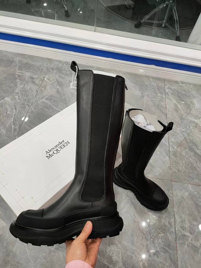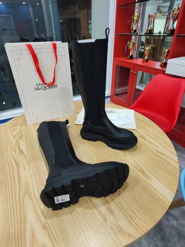 This is a reposted image of the popular Alexander McQueen shoe, factory direct. Buy the original, molded TPU outsole. This shoe is high quality and sold out in specialty stores. Endorsed by celebrities like Guli Nazha and Wu Lei, and influencers, this shoe is also featured on the latest Milan Fashion Week runway. See the images on Taobao for a hot sale. Fabric: Top-grain cowhide. Lining: Water-dyed sheepskin. Footrest: Cowhide lining. Sizes: 35-40. Color: Black.