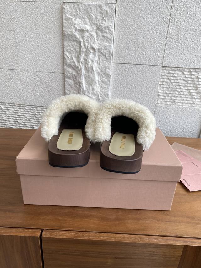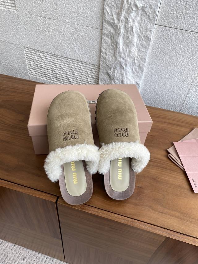 Original Purchased 1:1 Reproduction Developed and Manufactured, the softness of Miu Miu lambswool meets the exquisite texture of suede leather and the unique characteristics of these wooden-soled shoes, reinterpreted in the bold spirit of the Miu Miu wardrobe.