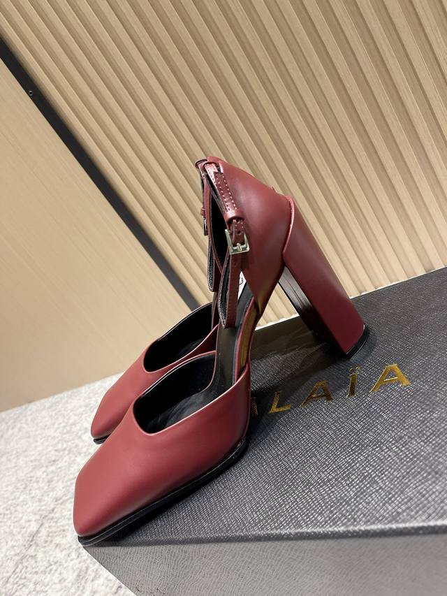 Alaia 25Ss Autumn/Winter Simple and Stylish Chunky Heel Square Toe Sandals!