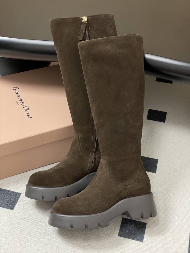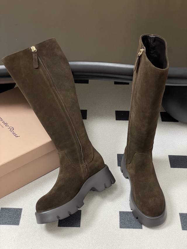 Top Quality Autumn/Winter New Rossi Gr Thick-Soled Straight Boots with Side Zipper, Height Increasing Platform Boots DDD Upper: Imported High-Quality Cowhide Suede DDD Lining: Comfortable and Breathable Sheepskin Insole DDD Original Mold Opening, IP Foamed Ultra-Lightweight and Meadowstain Outsole DDD Sizes 35-40 [40 Custom Made] DDD