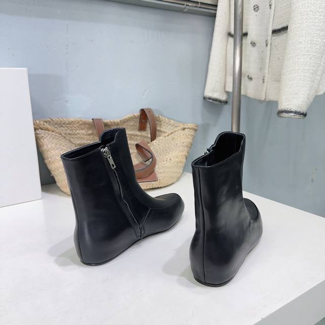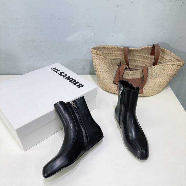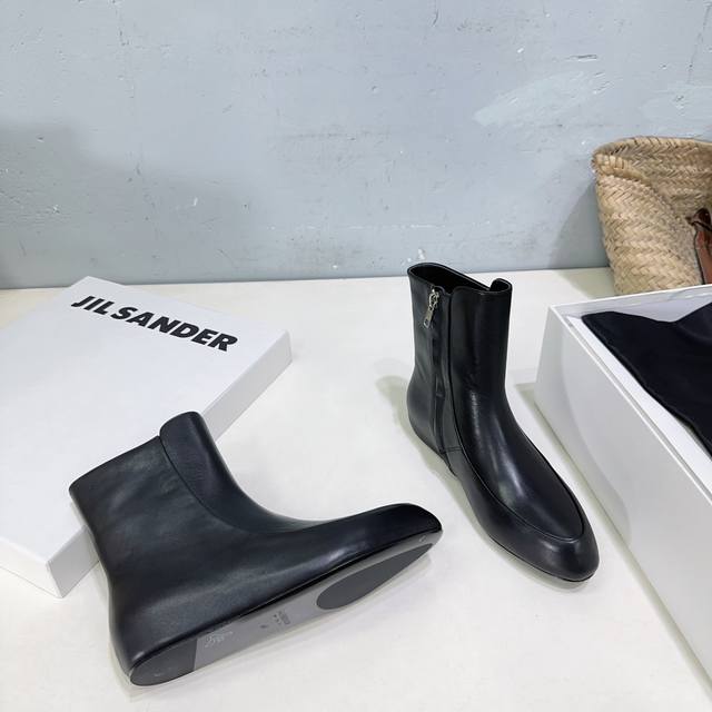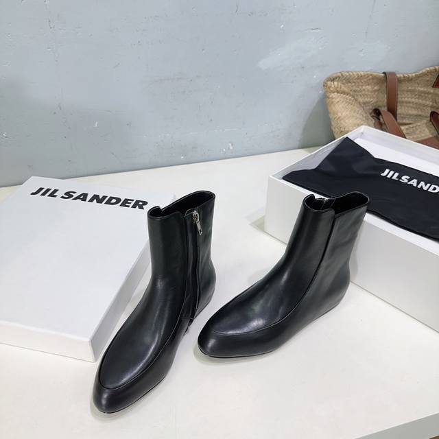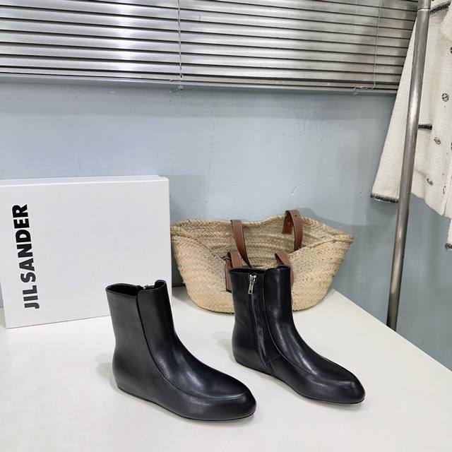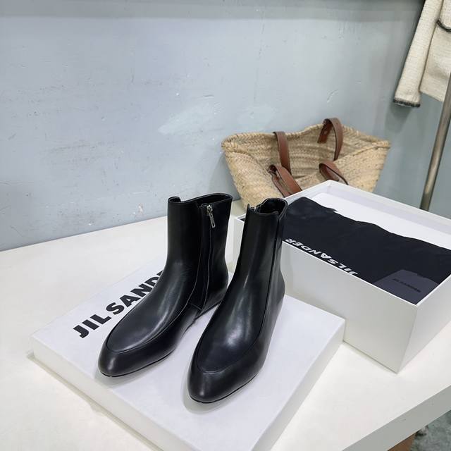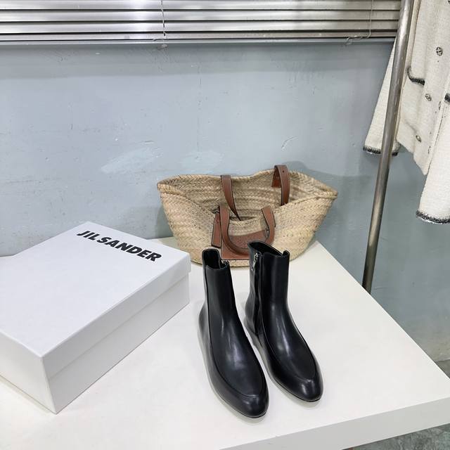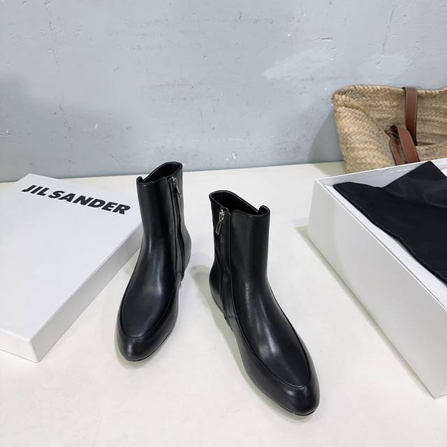 Top quality from a niche fashion brand! Jilsander 25Ss super popular autumn and winter minimalist heeled side zipper round toe boots! Simple and elegant style!