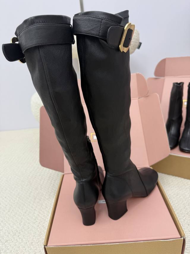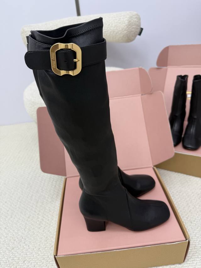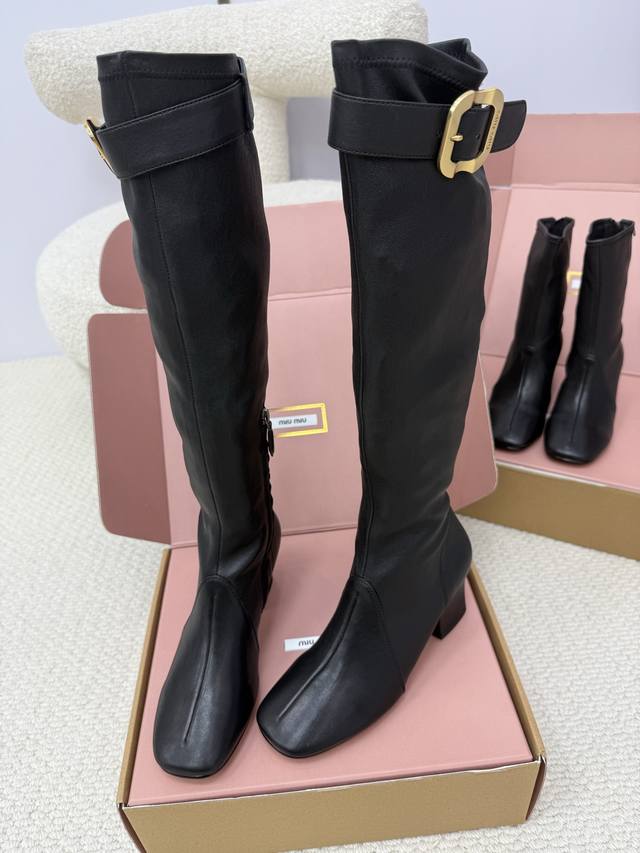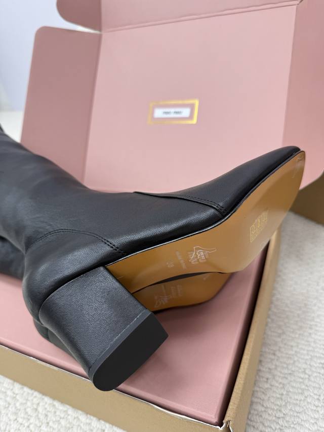 Miu's boots evolve every season. This season, their functionality is given a more feminine interpretation, with smooth lines that gently wrap around the knee. Light as a stocking, like an unlined leather glove, the boots sensually conform to the leg's lines.