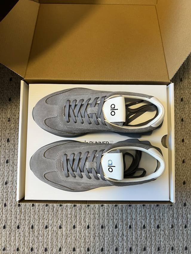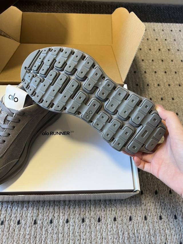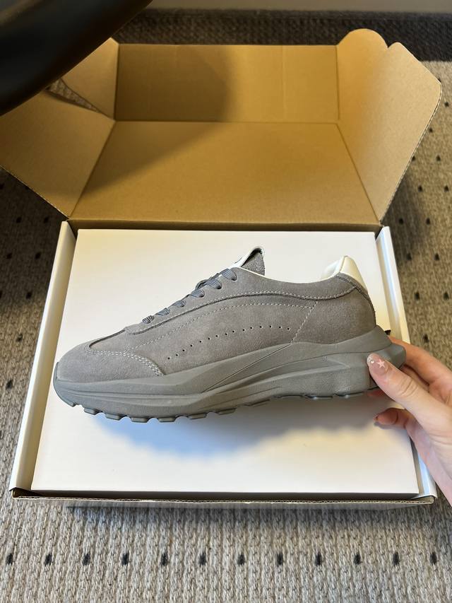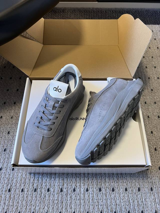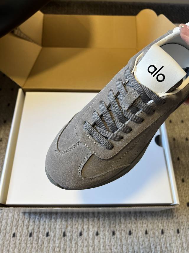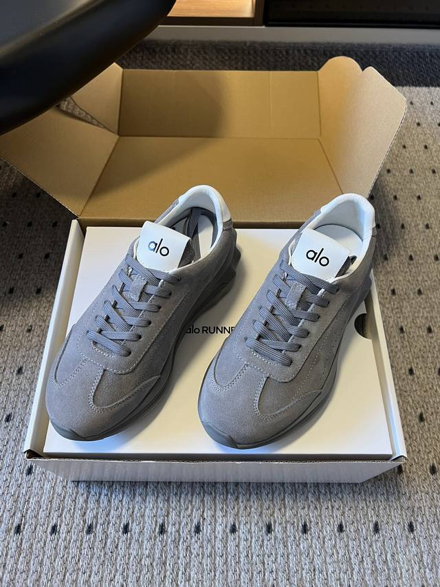 Top Quality P DDD Alo 25Ss New Retro Silhouette Casual Sneakers DDD The upper is made of suede, soft to the touch and with a high-end matte texture, enhancing the overall sophistication of the outfit; the inside of the shoe opening is paired with a simple white lining, creating a contrast in material and color with the upper. DDD Available in a variety of neutral colors including gray, beige, white, black, and dark brown, covering both warm and cool tones, suitable for commuting, leisure, and other occasions, easily blending into different styles of clothing. DDD Continues the silhouette of retro sneakers, with a matching color lace-up design, simple and neat; the thick sole adds visual lightness and subtly increases height, while the brand logo on the tongue enhances brand recognition. DDD Material: Cow Suede DDD Lining: Sheepskin DDD Outsole: Foam Outsole DDD Height Increase: 6Cm DDD Size: 35-45, 40-45 (custom sizes, no returns or exchanges) DDD