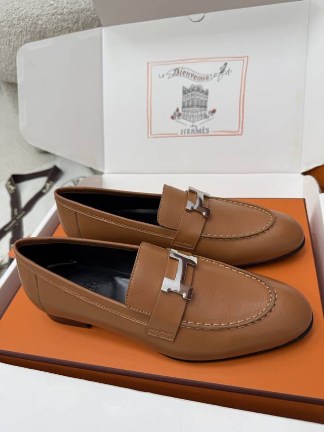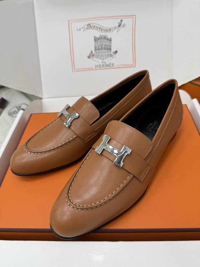 Top Quality Paris Retro H-Buckle Loafers | Original Purchase, Proxy Shopping Level - Brown Material and Craftsmanship: Original Imported Sheepskin Sheepskin Lining Silver H-Buckle on Upper Italian Genuine Leather Outsole 2.5cm Heel Size: 35-39 Custom sizes 40, 41, 42 are non-refundable