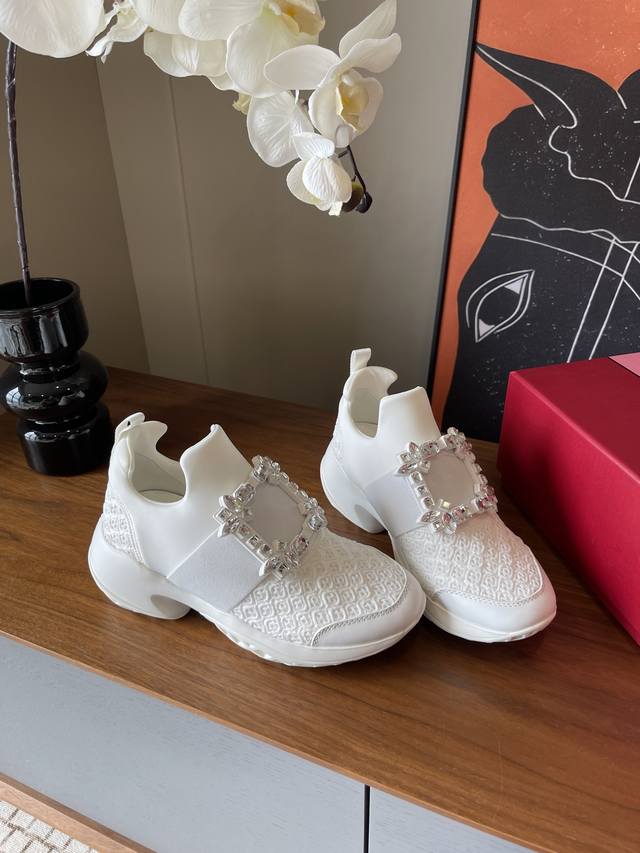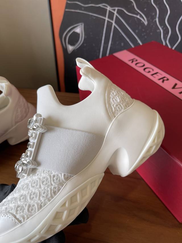 Roger Viv** classic thick-soled sneakers with textile and leather upper and sheepskin lining and rubber foam sole combination