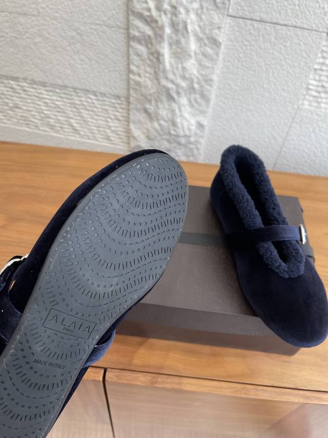 Top Version: DDD Alaia 2025 Autumn/Winter New Round Toe Flat Velvet Mary Jane Ballet Flats DDD Alaia's velvet ballet flats feature a soft and delicate upper with a subtle, lustrous finish, perfect for autumn and winter outfits. The round toe and low heel design offer comfort and elegance, suitable for both work and leisure. The non-slip sole ensures a safer walking experience. Velvet material is recommended for hand washing or professional dry cleaning to maintain its texture. They pair beautifully with skirts or trousers, a must-have for a retro and gentle style! DDD Fabric: Original Custom Velvet DDD Lining: Imported Wool DDD Outsole: Original Molded Rubber Outsole DDD Size: 35-41 40 & 41 are custom-made and non-refundable DDD
