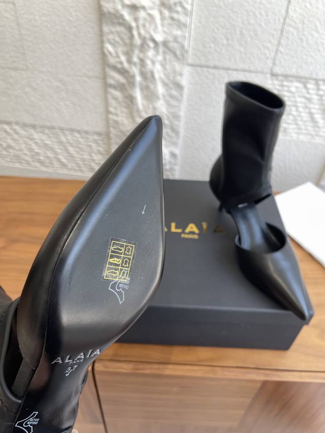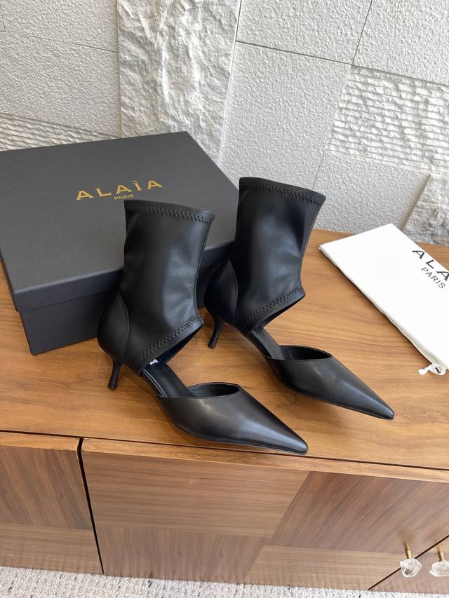 Alaia 25Ss Autumn/Winter New Pointed Toe Hollow-Out Stiletto Heel Slim Fit Ankle Boots