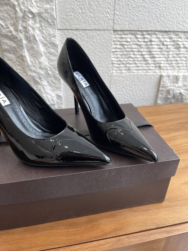 Alaia feature a sculptural design with a three-dimensional embossed heart pattern on the upper, creating a striking visual effect. Simple yet versatile, they exude a sophisticated and capable air. The material is flattering and elongates the legs, giving you a confident and queen-like presence. Material: Imported calfskin patent leather. Insole: Imported sheepskin. Outsole: Italian imported genuine leather. Heel height: 9cm. Size: 35-42, 40, 41, 42. Custom orders are non-refundable.