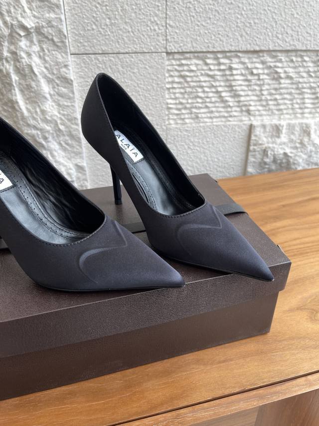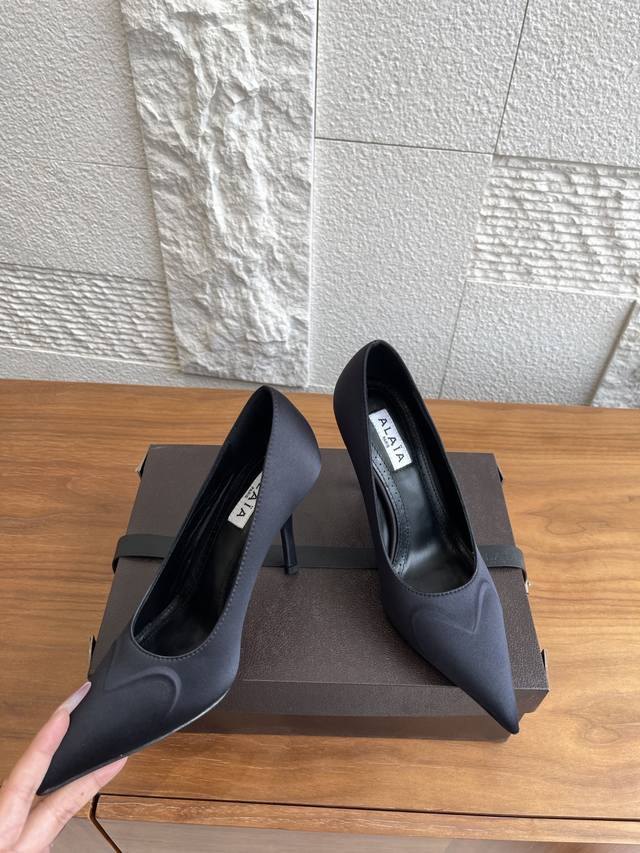 Alaia feature a sculptural design with a three-dimensional embossed heart pattern on the upper, creating a striking visual effect. Simple yet versatile, they exude a sophisticated and capable air. The material is flattering and elongates the legs, giving you a confident and queen-like presence. Material: Imported silk. Insole: Imported sheepskin. Outsole: Italian imported genuine leather. Heel height: 9cm. Size: 35-42, 40, 41, 42. Custom orders are non-refundable and non-exchangeable.