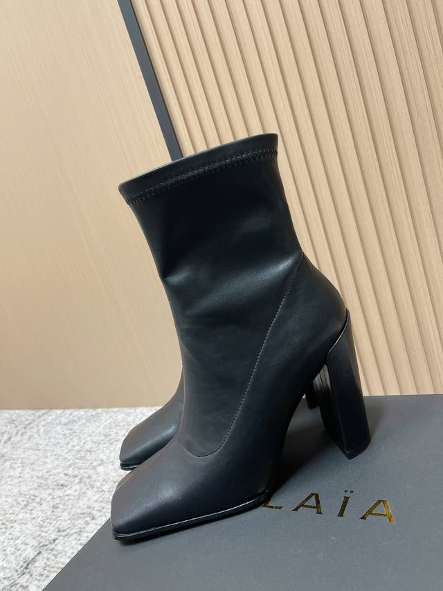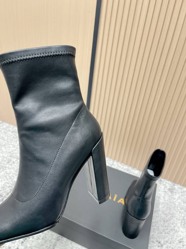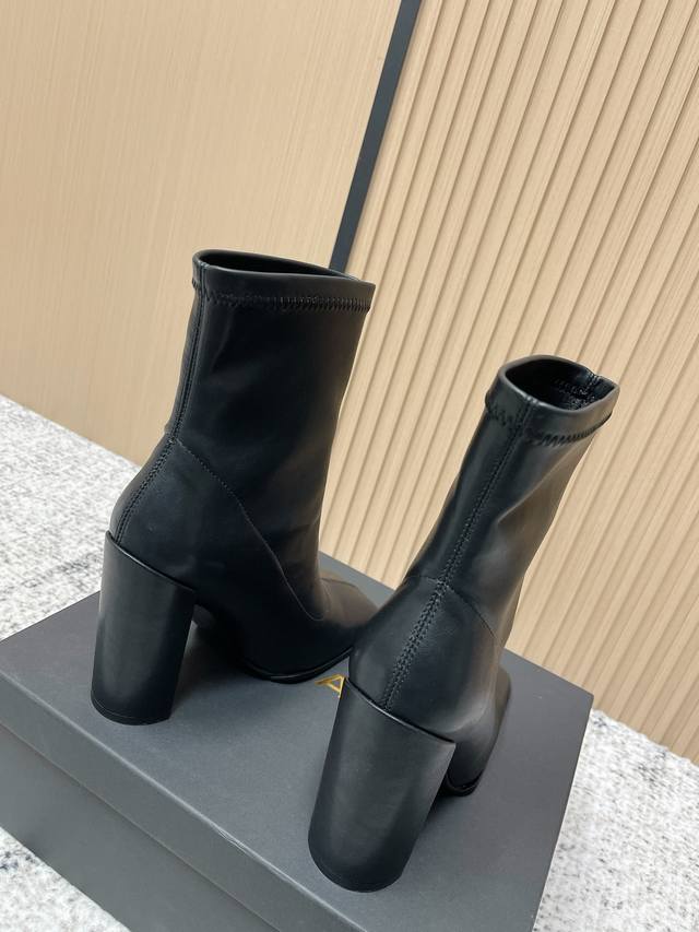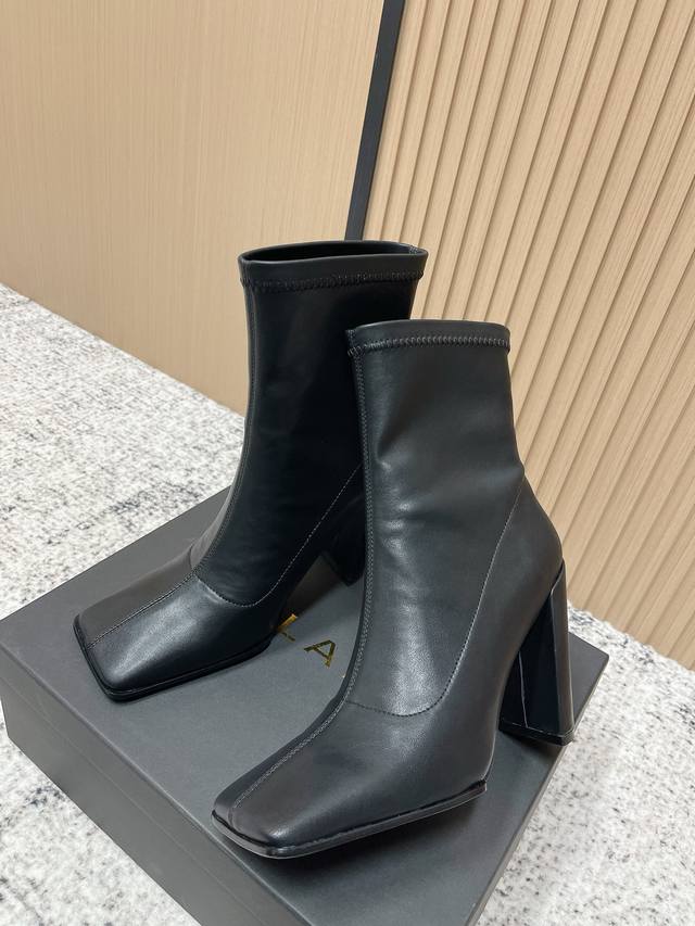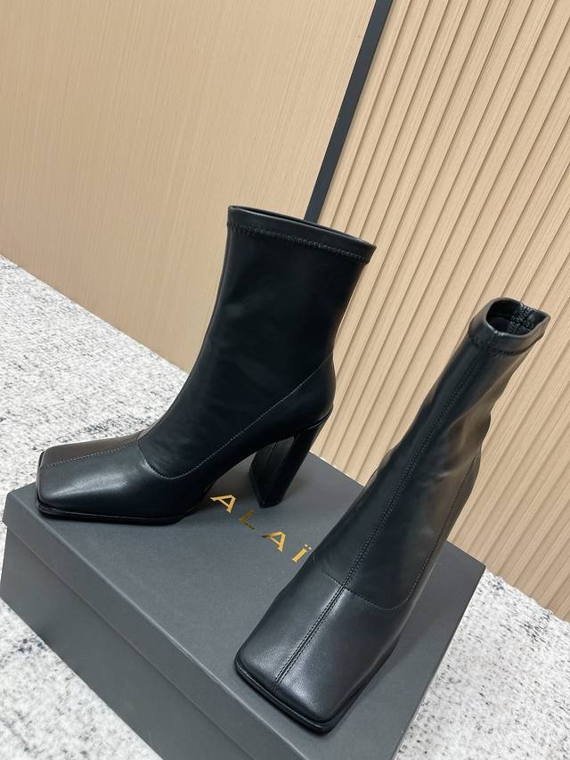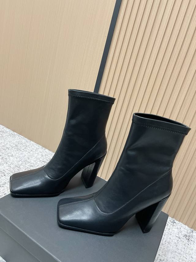 Alaia Minimalist Chic Square-Toe Ankle Boots High-Heeled Slip-On Elastic Boots