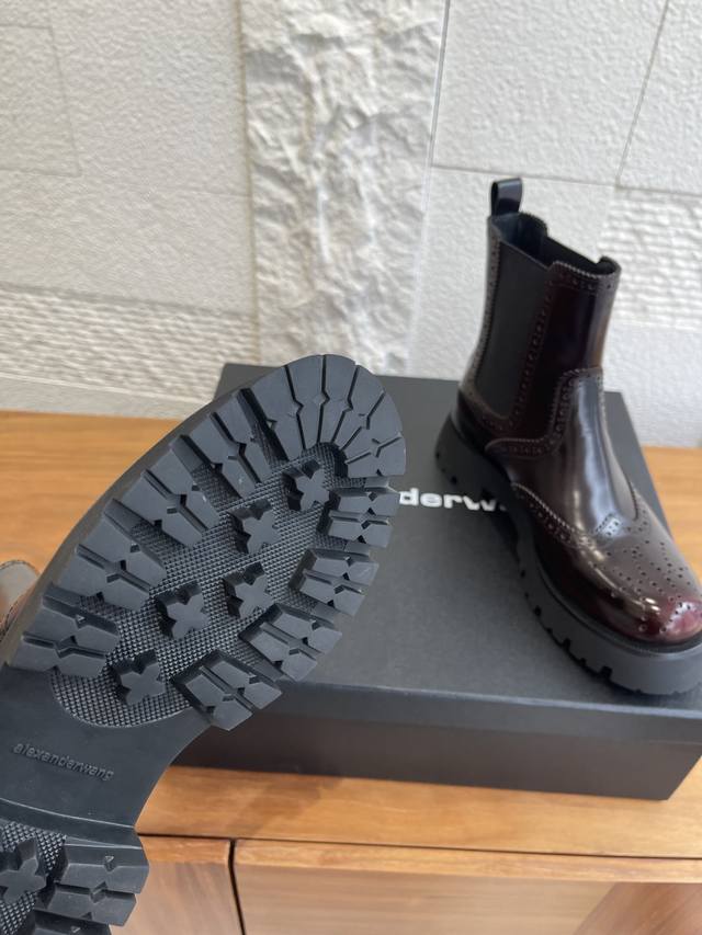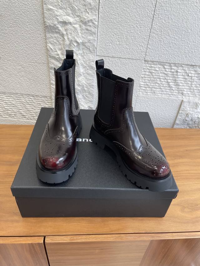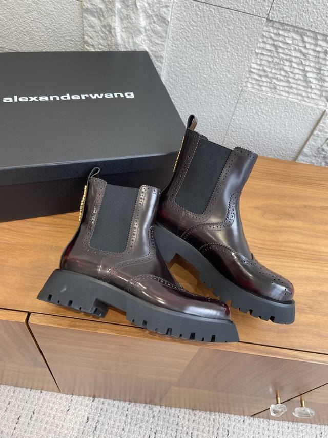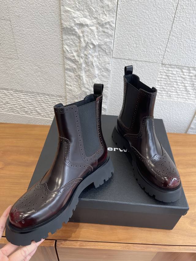 Top Version: DDD Alexander Wang 25Ss Autumn/Winter New Retro Brogue Thick-Soled Chelsea Boots DDD These boots effortlessly combine a cool, androgynous vibe with a sophisticated style. The glossy leather has a built-in "reflector" effect, shimmering with a high-end sheen in the light. The elastic side straps fit snugly around the ankle, flattering all foot shapes for a sleek and effortless look. DDD From biker jackets to sweet and spicy skirts, from Cityboy hoodies to minimalist suits, these boots are a style-mixing "cheat code," and a key to creating a stylish atmosphere in your autumn/winter wardrobe. When you want to stand out from the crowd, slip them on and instantly become the coolest fashionista on the street. DDD Fabric: Original custom-made distressed edge beads DDD Lining: Imported silk sheepskin lining DDD Outsole: Original molded rubber foam outsole DDD Size: 35-40 40 is custom-made and non-refundable DDD