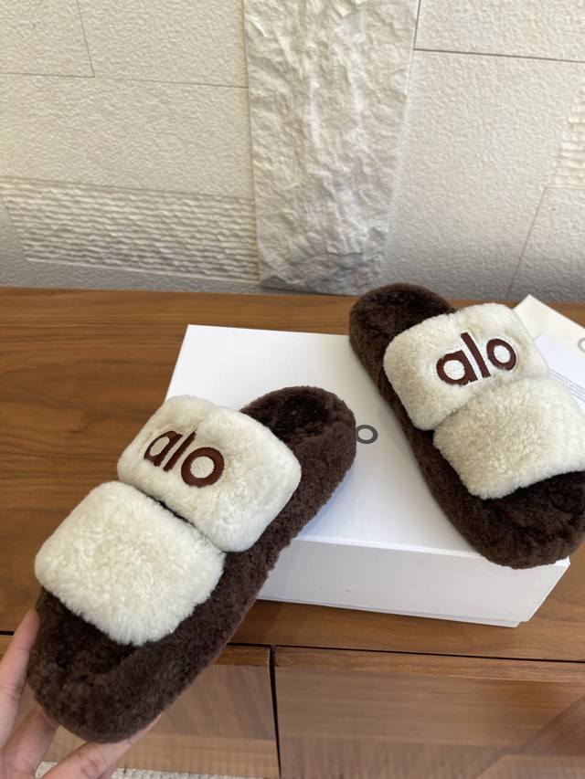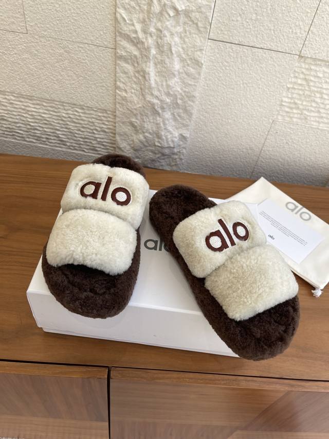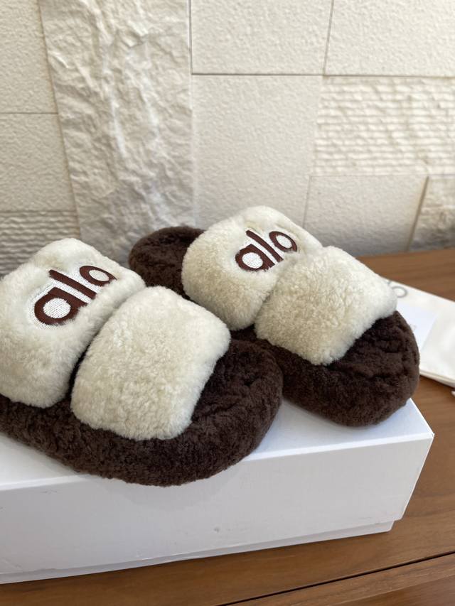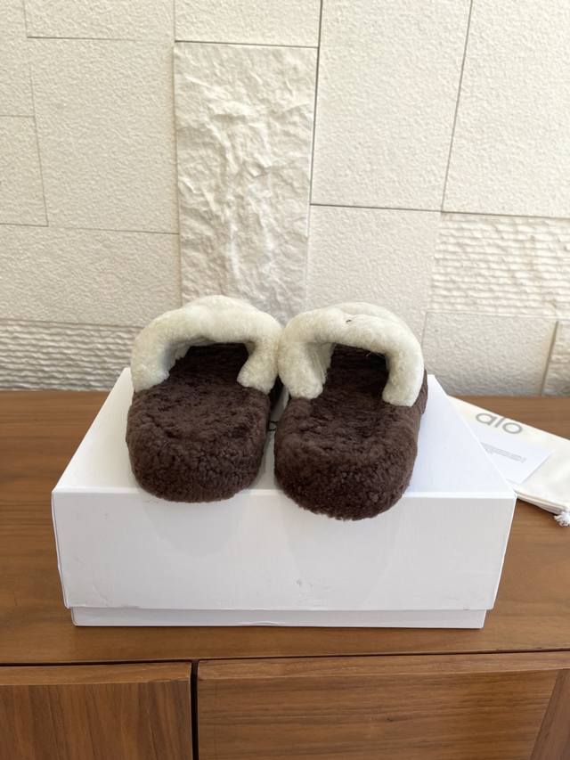 Alo These lambswool sandals are so comfortable! The beige color is gentle and versatile, and the soft upper is incredibly comfortable to walk on. The full wool feel is very comfortable, and the sole has a 3cm thick platform. Crucially, the anti-slip design is very reassuring. Suitable for everyday outings and lounging at home, they go well with wide-leg pants and long pants.