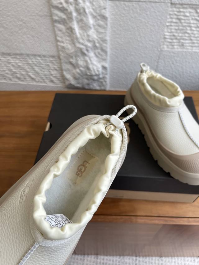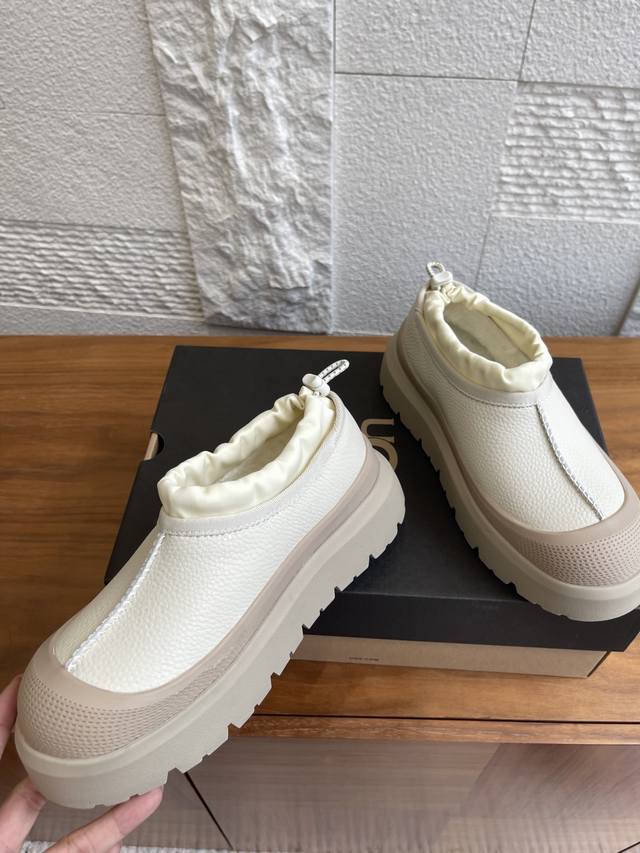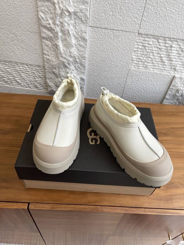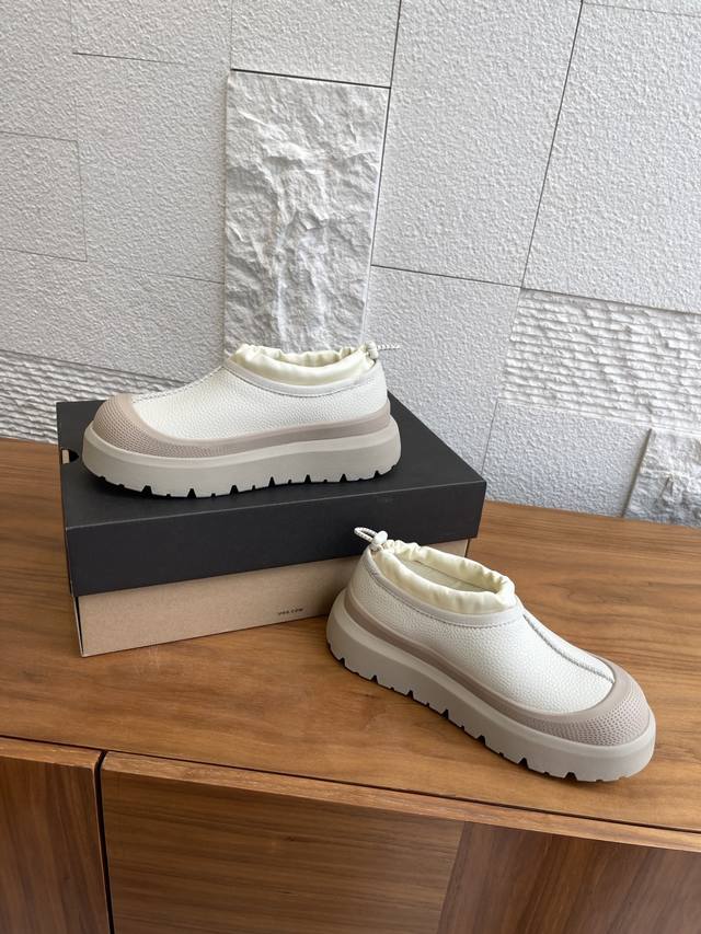 Ugg 2025 Autumn New Unisex Heritage Series Tasman Weather Hybrid Ankle Boots/Snow Boots. This unisex Heritage Series Tasman Weather Hybrid ankle boot features a classic waterproof hybrid design with a trendy color-blocking style. It boasts a split cowhide suede upper, approximately 17mm Uggplush lining and insole, elastic laces and buckles, and a high-top shaft, combining functionality and warmth. The Eva outsole provides excellent grip thanks to its non-slip spiderweb rubber sole.