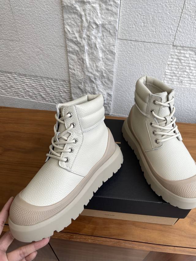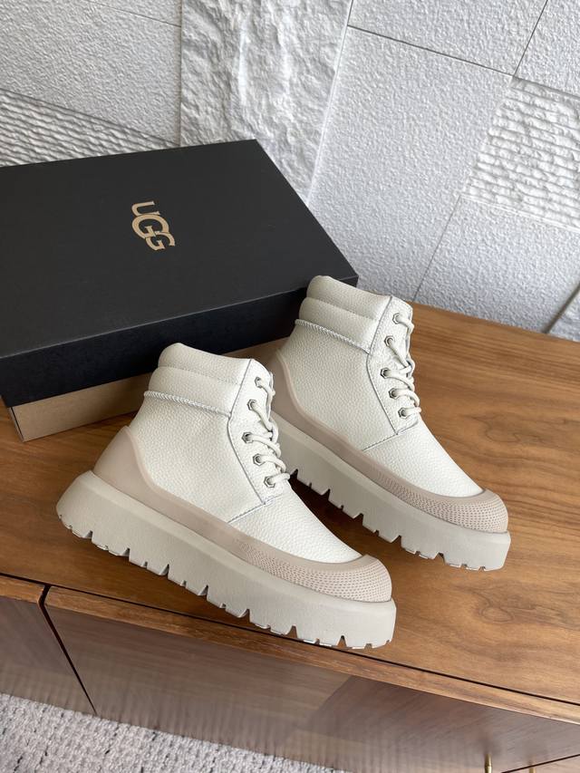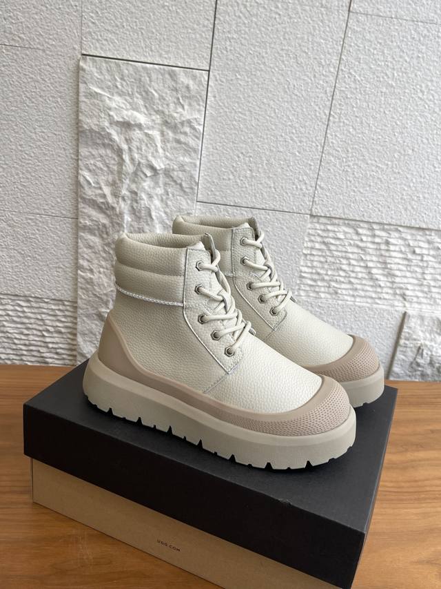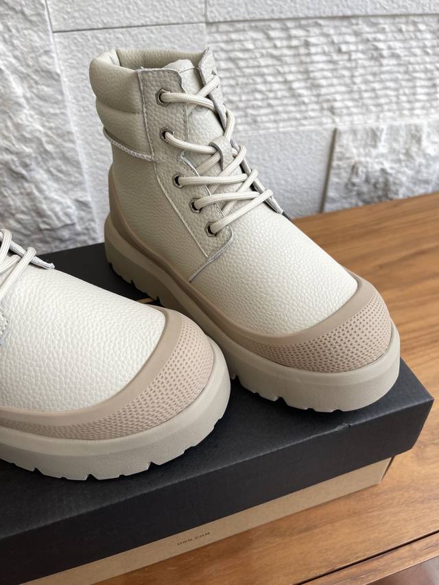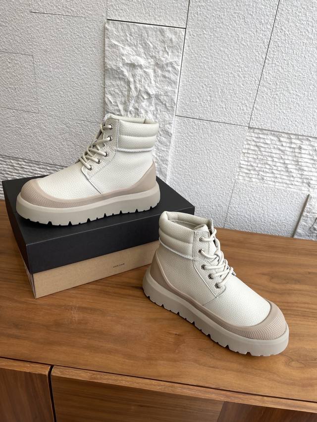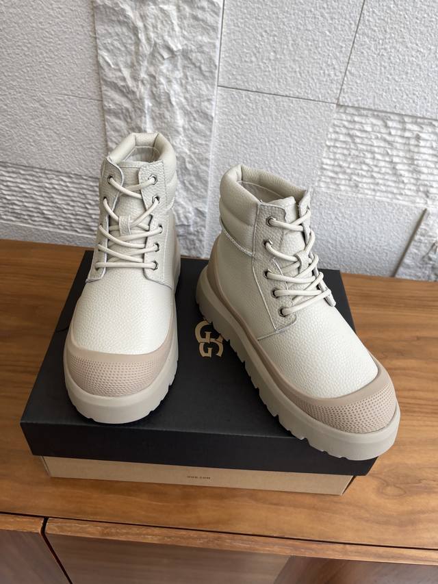 Ugg 2025 Autumn/Winter New Unisex Heritage Series Neumel Weather Hybrid Lace-up Thick-soled Ankle Boots/Snow Boots. This unisex Heritage series Neumel Weather Hybrid boot features a classic waterproof hybrid design with a trendy color-blocking style. It boasts a split cowhide suede upper, approximately 17mm Uggplush lining and insole, elastic laces and buckles, and a high-top boot shaft, combining functionality and warmth. The Eva outsole provides excellent grip thanks to its non-slip spiderweb rubber sole. Material: Imported lychee-patterned cowhide; Lining: Sheepskin; Outsole: Eva foam outsole. Size: Women's 35-40 (40 is custom-made and non-refundable); Men's 39-45 (45 is custom-made and non-refundable).