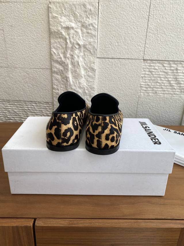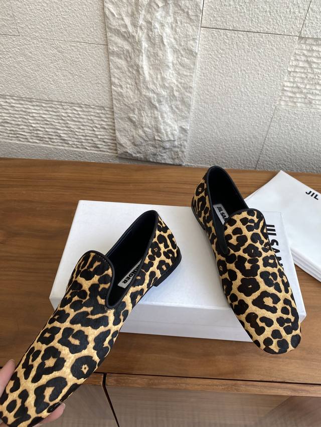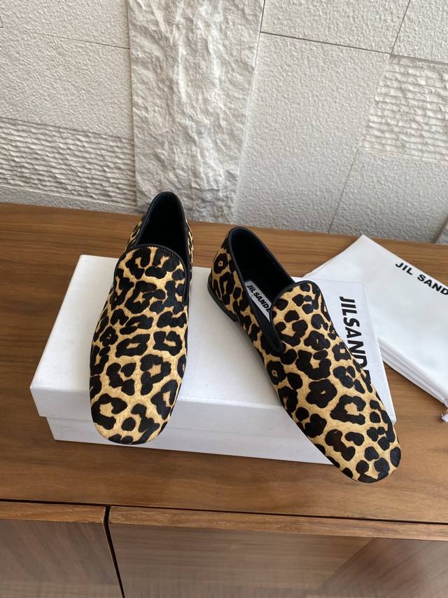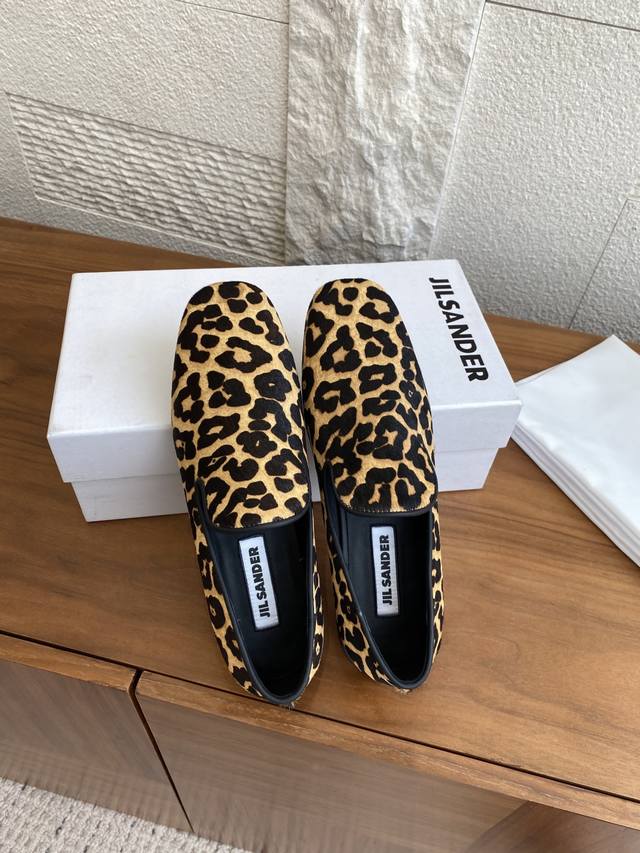 Top Version: Jil Sander 25Ss Round Toe Leopard Print Loafers. Jil Sander reinterprets the classic leopard print element with its unique design language. These leopard print calfskin loafers blend wild charm with minimalist aesthetics, creating a visually striking yet elegant footwear piece through precise modern tailoring. Available in both flat and heeled options, meeting all-day wear needs from daily commutes to fashionable occasions. Material: Original custom leopard print suede calfskin Lining: Imported goatskin Outsole: Italian imported genuine leather outsole + injection-molded rubber Heel Height: Flat, 6.5cm Size: 35-41 (40/41 are custom-made and non-refundable).