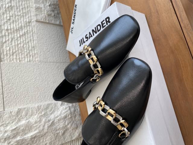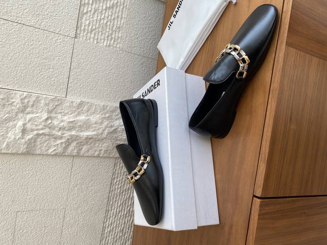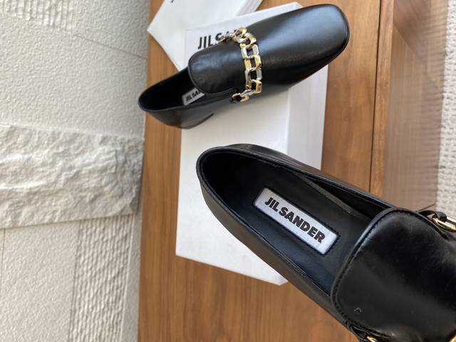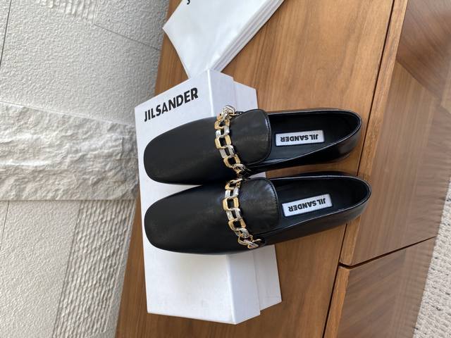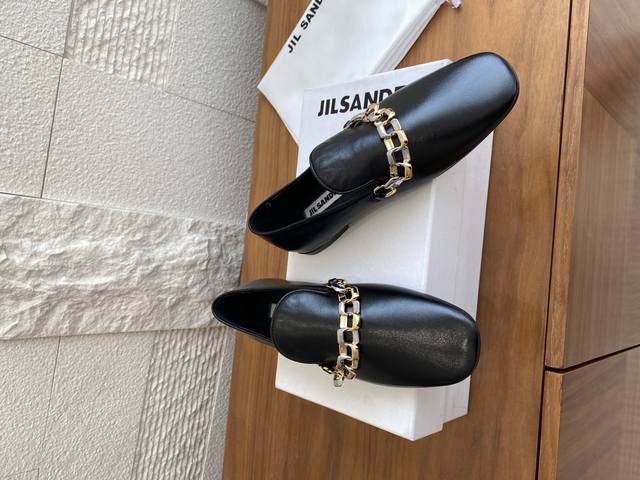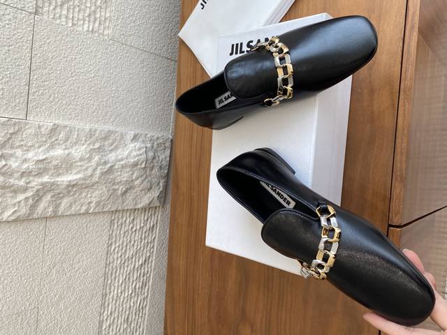 Top Version: Jil Sander 25Ss Two-Tone Chain Round Toe Flat High-Heel Loafers. Jil Sander is the perfect blend of ultimate luxury and modern simplicity. These loafers are crafted from luxurious lambskin and adorned with a meticulously designed two-tone metal chain, cleverly combining the elegance of classic loafers with contemporary chic. Available in both flat and high-heeled styles to suit different occasions and styling needs, revealing exquisite details within a minimalist design. Material: Imported lambskin, imported suede. Lining: Imported goatskin. Outsole: Italian imported genuine leather outsole + injection-molded rubber. Heel Height: Flat, 6.5cm. Size: 35-41 (40-41 are custom-made and non-refundable).