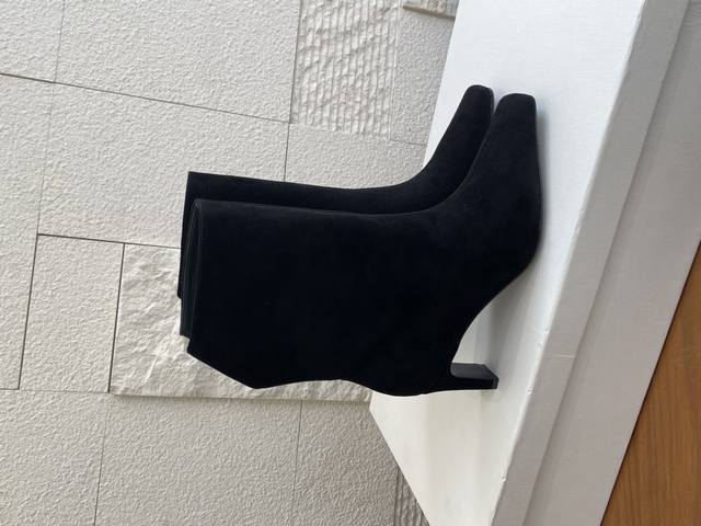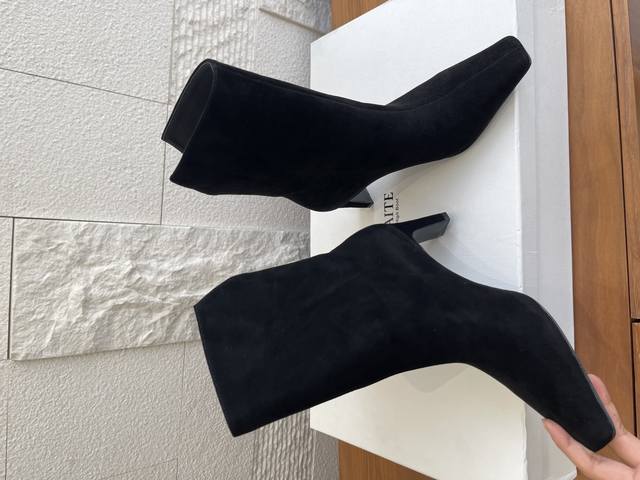 Khaite Ona ankle boots enhances the ease of wearing and pulling on this suede square-toe ankle boot. The smooth blade heel contrasts sharply with the square toe, creating a slimming and versatile look.