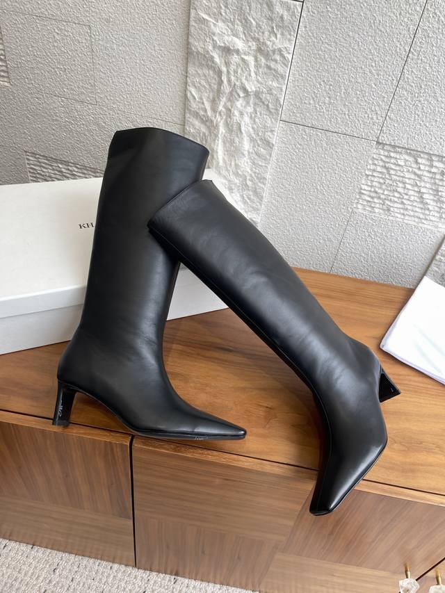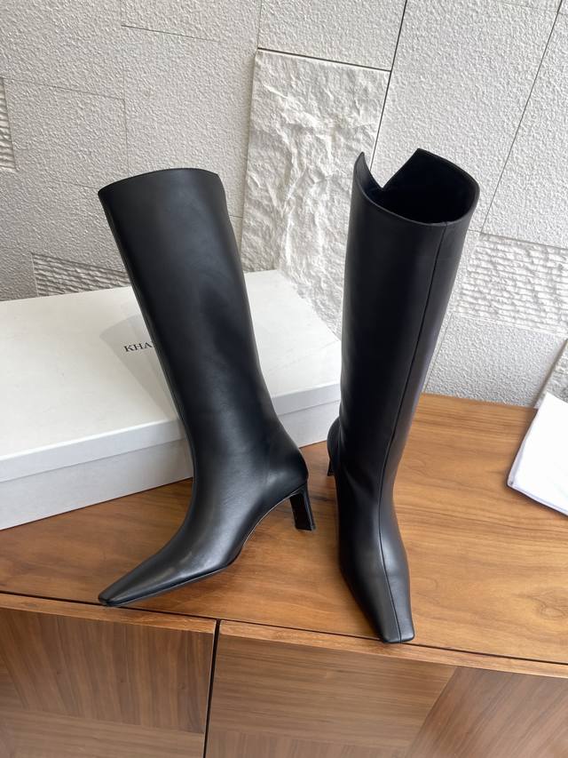 Khaite 2025 Autumn/Winter New Square Toe High-Heeled Ona Boots. These