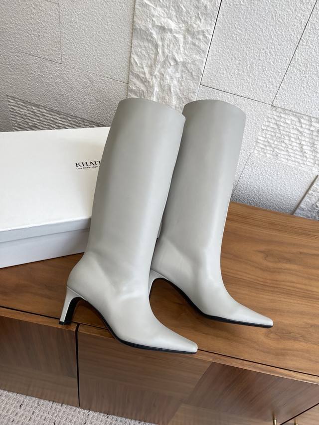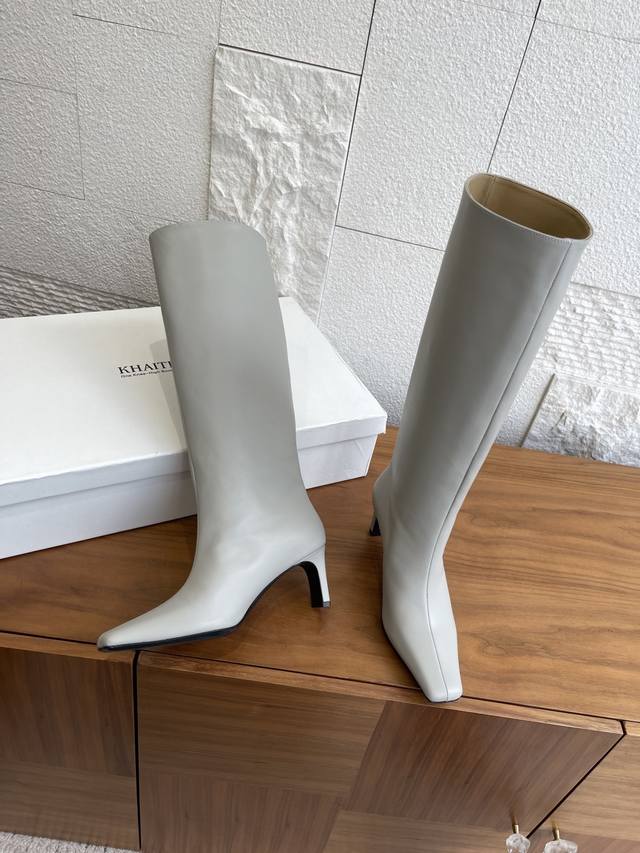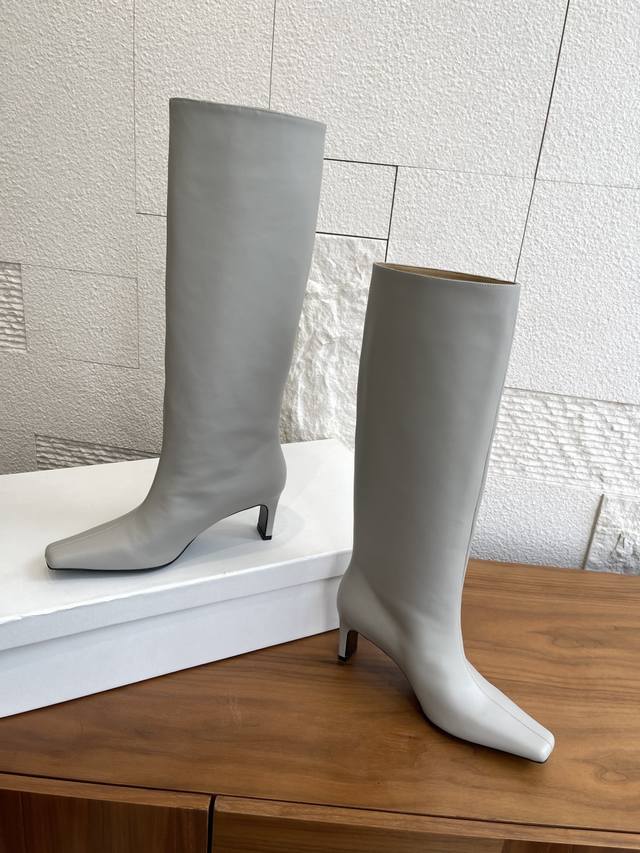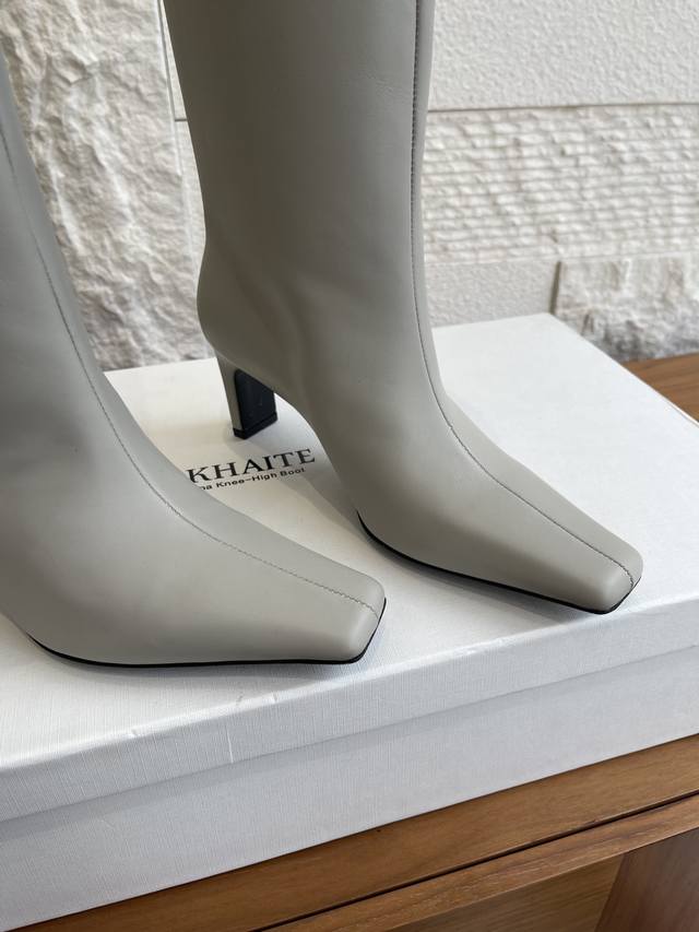 Top Version: Khaite 2025 Autumn/Winter New Square Toe High-Heeled Ona Boots. The