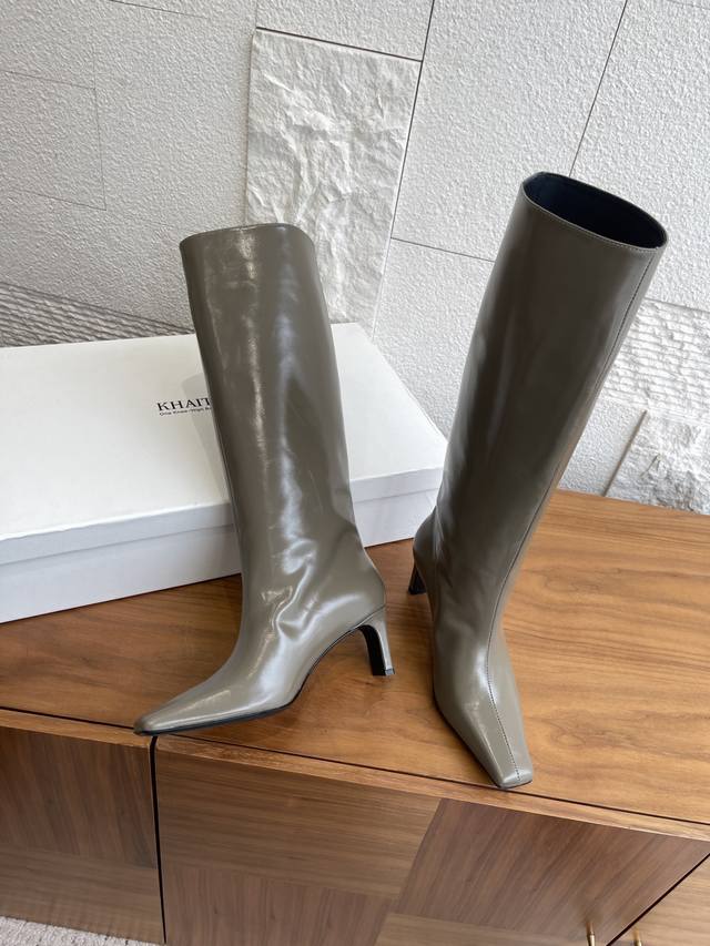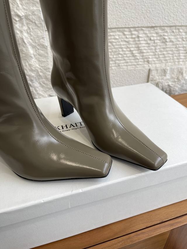 Khaite 2025 Autumn/Winter New Square Toe High-Heeled Ona Boots. These
