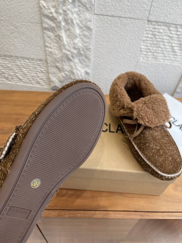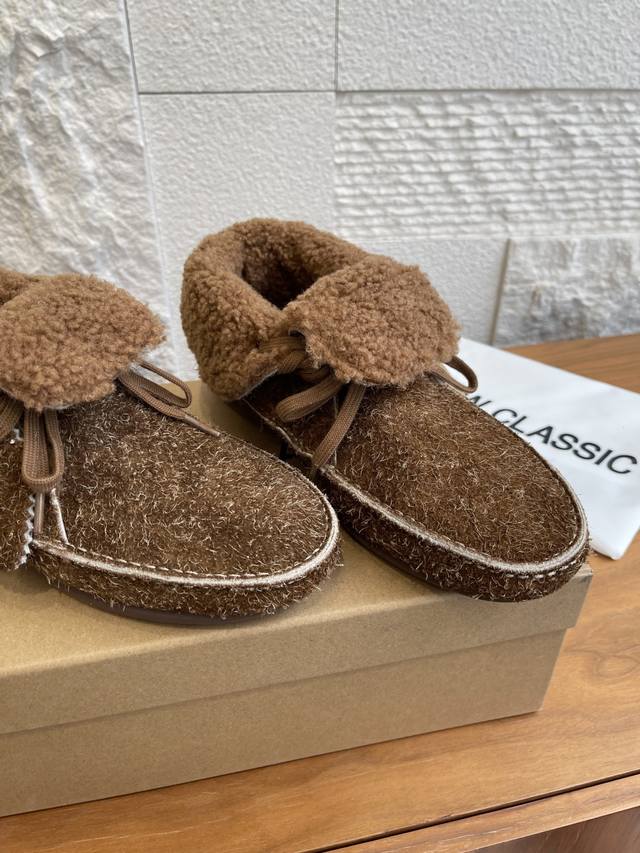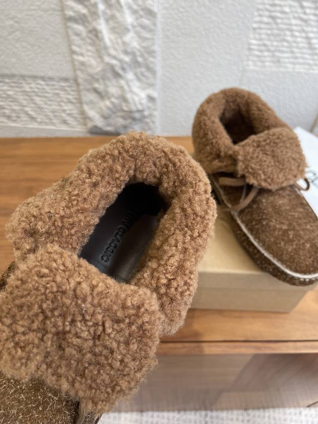 Low Classic Shearling moccasins are soft and warm! The brushed upper gives them a premium feel, and the rubber outsole is non-slip, making them super practical for everyday wear. The retro silhouette and simple design make them perfect for pairing with trench coats or casual pants. Comfortable and stylish, they can be worn for both work and leisure! Suitable for those who appreciate quality and design. Material: Original custom suede. Lining: Wool lining. Outsole: Original molded rubber outsole. Size: 35-40. Size 40 is custom-made and non-refundable .