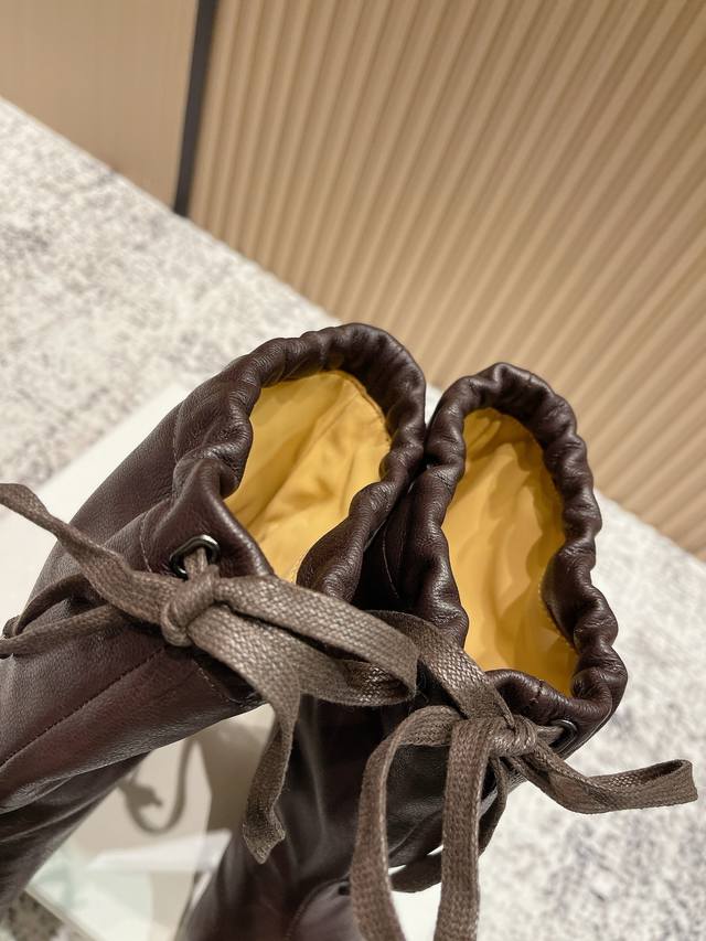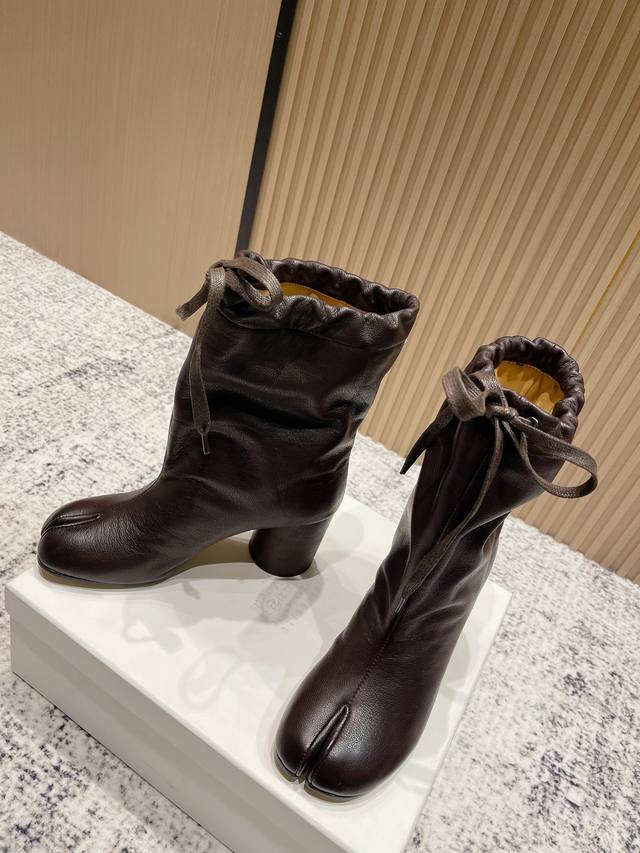 Top Version: Maison Margiela Split-Toe Lace-up Loose High-Heeled Ankle Boots, Balloon Boots. Mm6 Tabi Split-Toe Shoes, Autumn/Winter New Arrival, Highest Version, 1:1 Perfect Replica. Original mold, double-layer genuine leather sole, original last. Very stylish and easy to match with various styles. A blessing for short legs, instantly transforming them into long legs. Unrestrained by conventions, be yourself! Super soft and comfortable. Upper: Original cowhide. Lining: Original genuine leather. Outsole: Original genuine leather sole. Heel height: 7.5cm. Size: 35-39. Size 40. Custom orders are non-refundable and non-exchangeable.