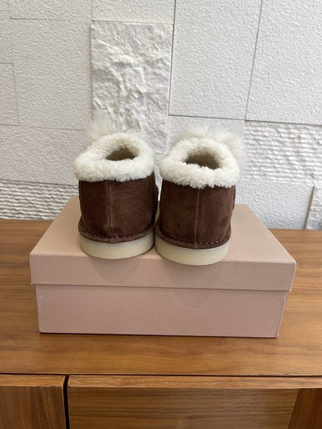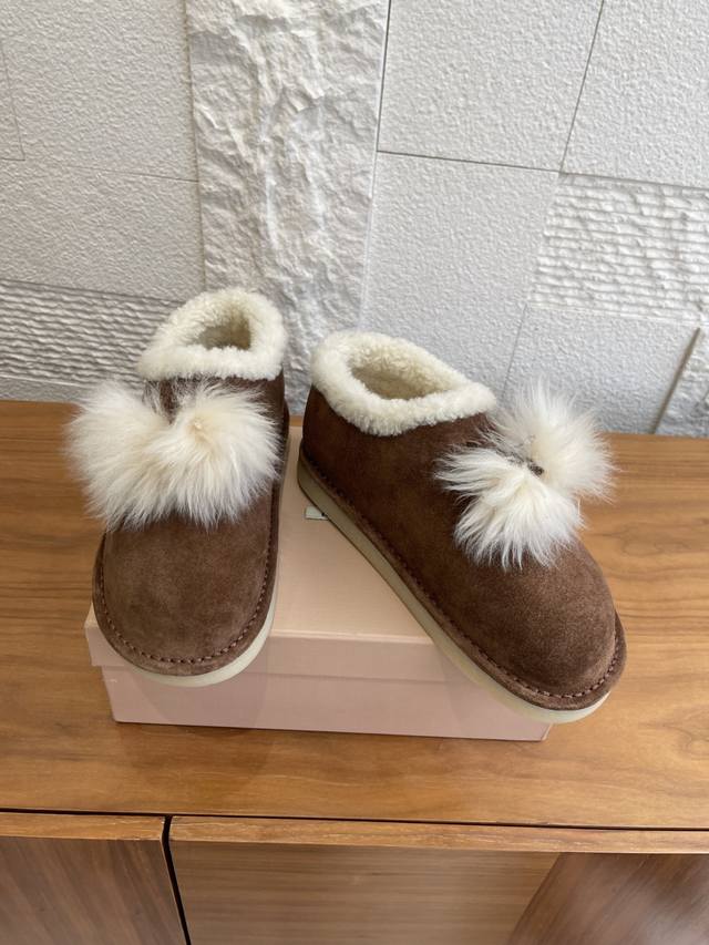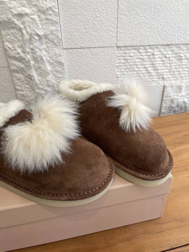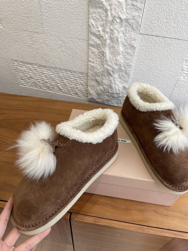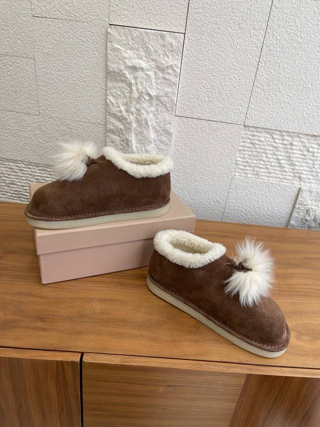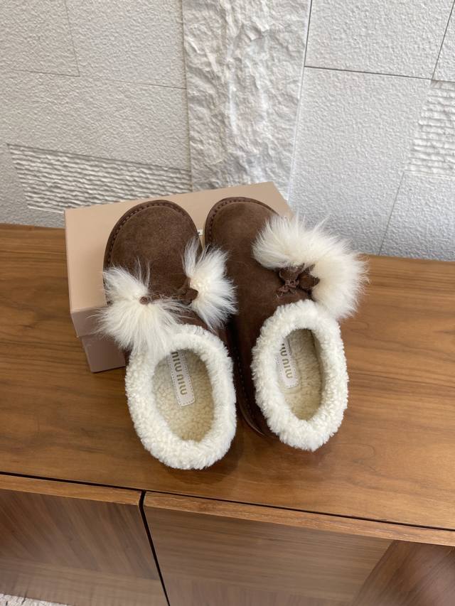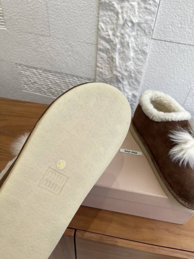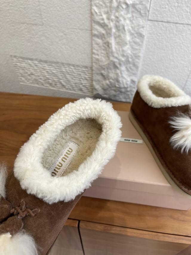 Top Version: DDD Miu Miu 2025 Autumn/Winter New Suede and Lambswool Mules/Snow Boots DDD Miu Miu Tassel Suede Snow Boots, suede + white wool tassels, sweet and warm! Thick sole design, comfortable to wear and subtly adds height. Soft upper, warm lining, suitable for everyday or casual wear in autumn and winter. Pair with skirts and sweaters to easily achieve a gentle winter vibe~ Whether at home or out, it's the perfect finishing touch to your winter outfit. DDD Fabric: Imported high-gloss cow suede DDD Lining: Imported wool DDD Outsole: Original molded rubber outsole DDD Size: 35-41 40 41 Custom orders are non-refundable DDD