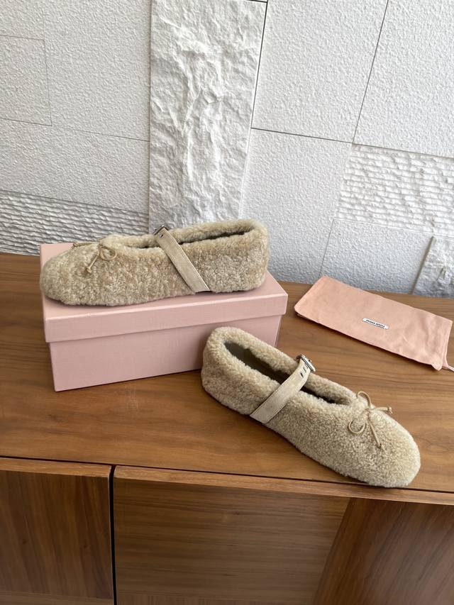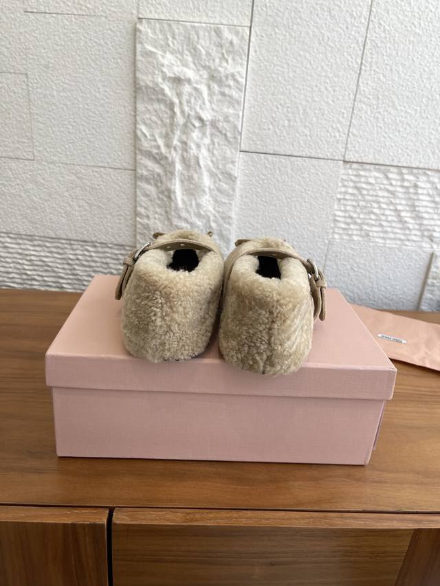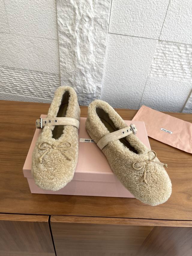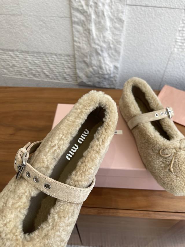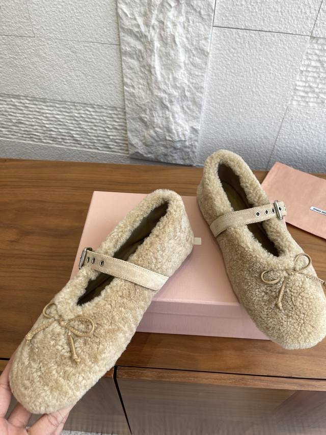 Miumiu 2025 Autumn/Winter New Bow Buckle Furry Ballet Flats