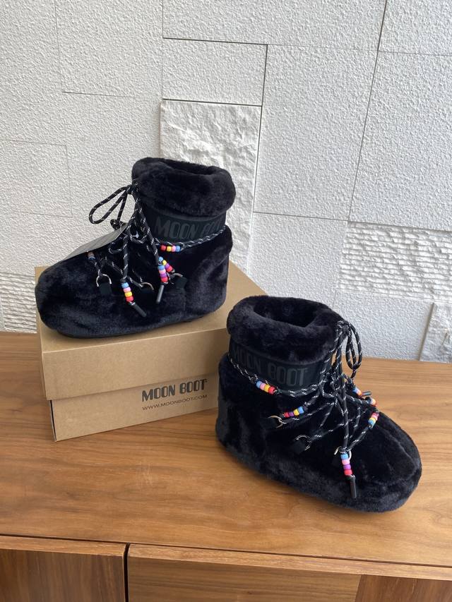 Moon Boot 2025 Autumn/Winter Hot Selling Unisex Icon Beaded Eco-friendly Fur High-top and Low-top Snow Boots.