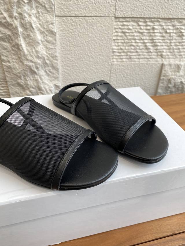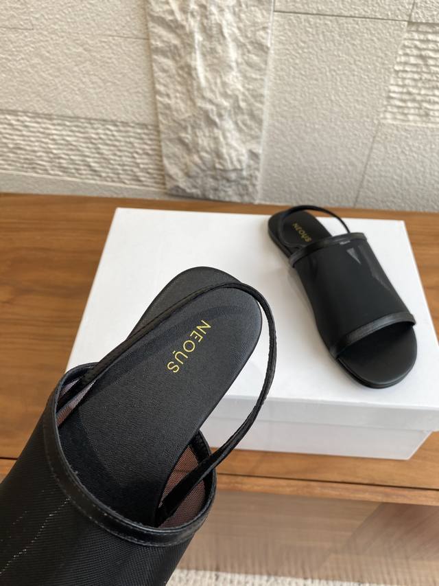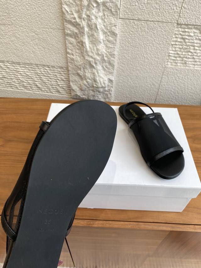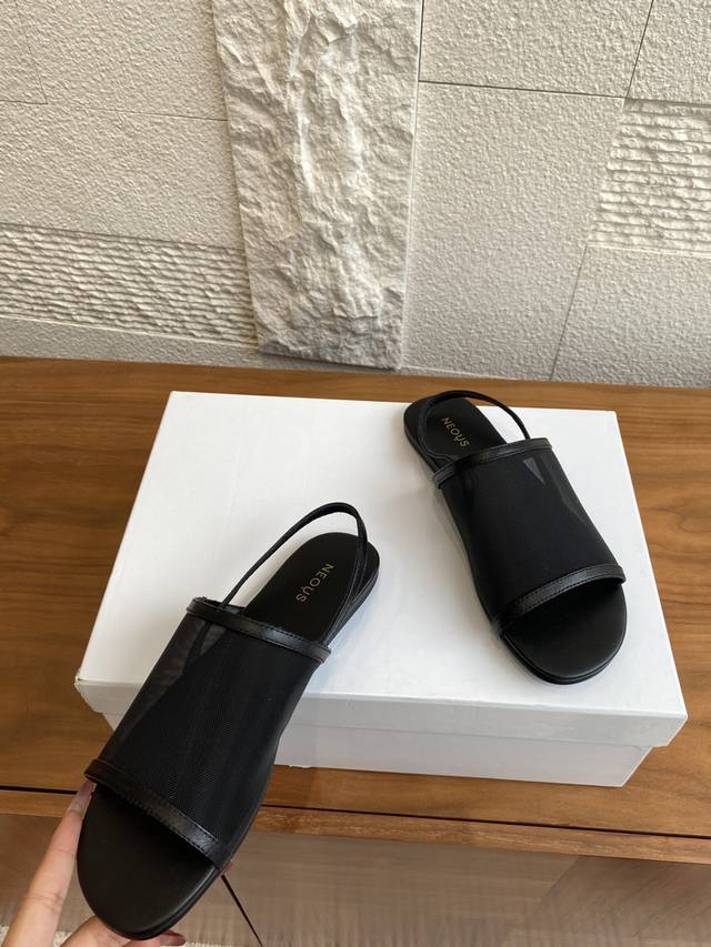 Neous Salm sandals feature a high-quality mesh upper for breathability and comfort. A delicate back strap adds elegance, allowing for effortless movement. The simple and stylish design exudes a casual and fashionable vibe. Comfortable and lightweight, they offer freedom of movement and suit everyday individual style. Material: Imported mesh upper, imported calfskin. Insole: Imported calfskin. Outsole: Original imported rubber outsole. Size: 35-40. Size 40 is custom-made and non-refundable.