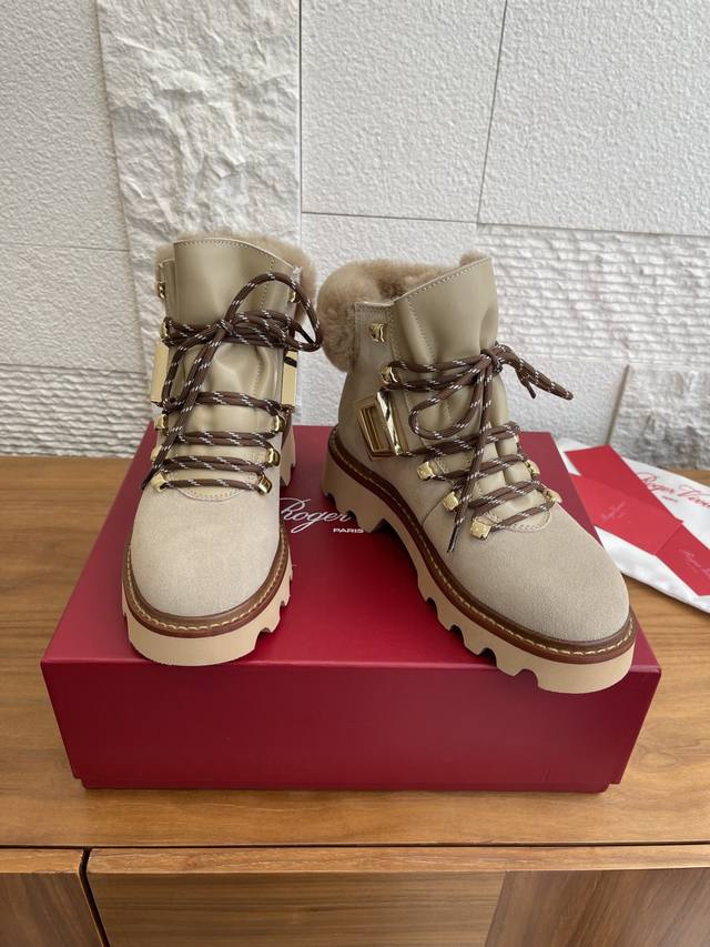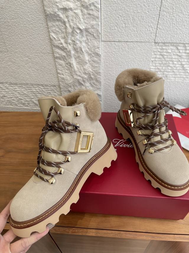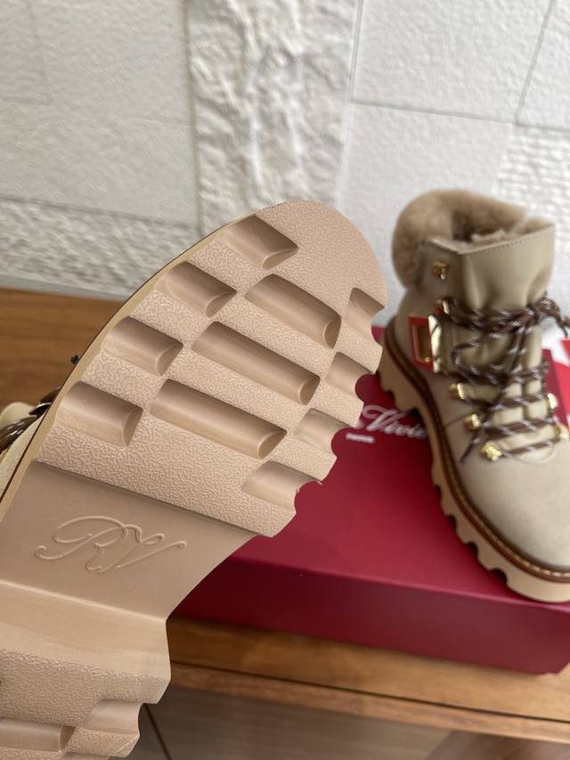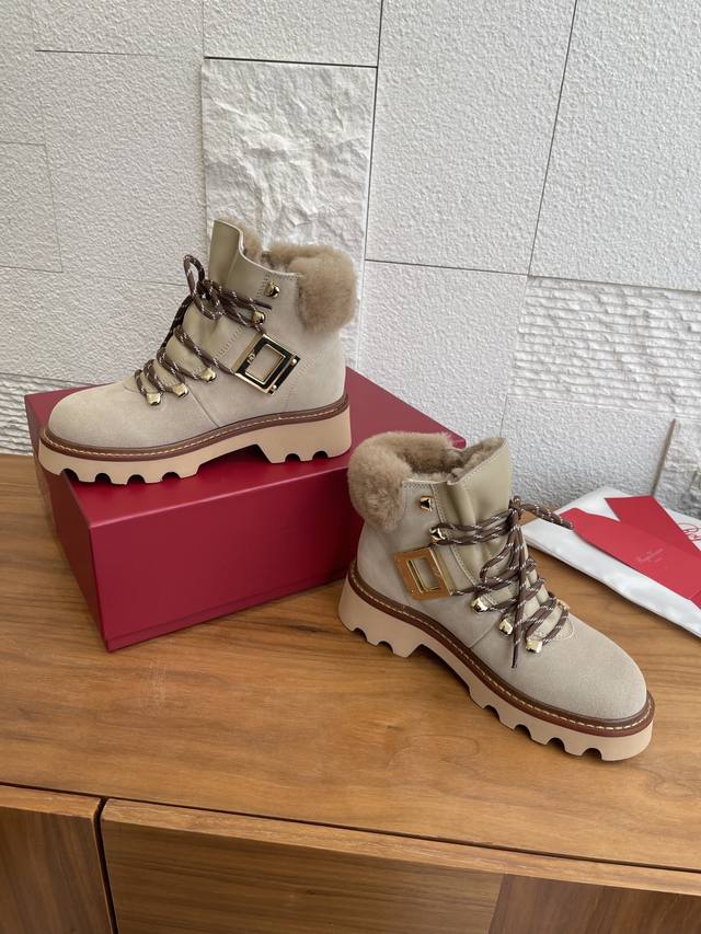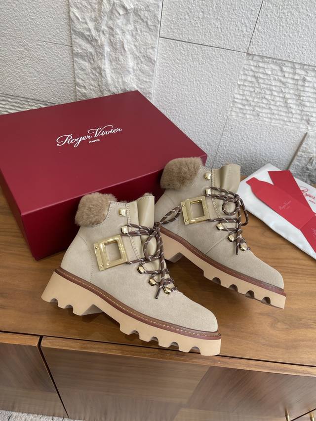 Top Version: DDD Roger Vivier 25Ss Autumn/Winter New Viv' Rangers Truck Series Ankle Boots DDD These Viv' Rangers Truck series boots are both unique and sophisticated, embodying urban style. Made of suede leather, these boots feature a stitched sheepskin lining and insole, metal buckles on the sides, and a non-slip platform sole, easily adding personality to any look. DDD Material: Imported suede cowhide DDD Lining: Insole: Imported sheepskin DDD Outsole: Original molded TPU rubber foam outsole DDD Size: 35-40 Size 40: Custom orders are non-refundable and non-exchangeable DDD