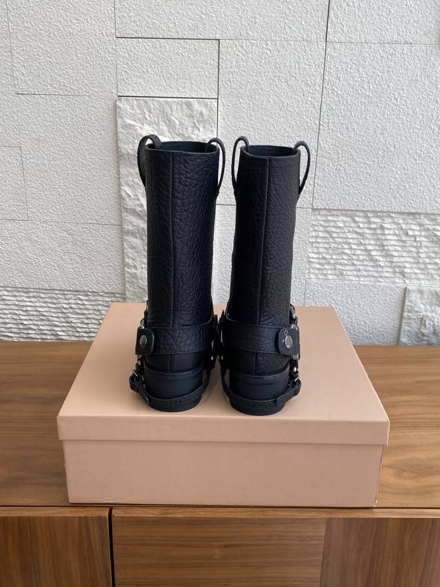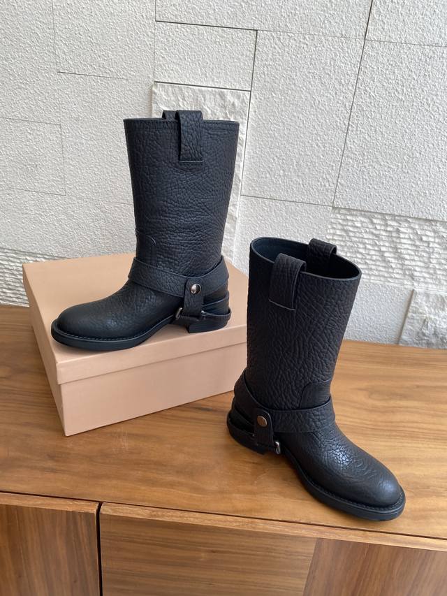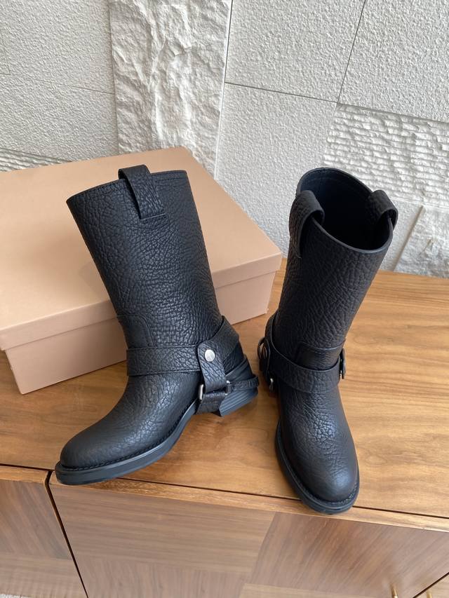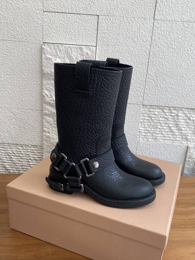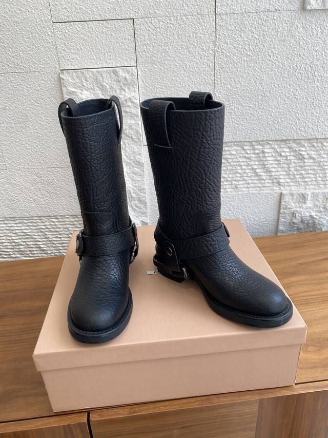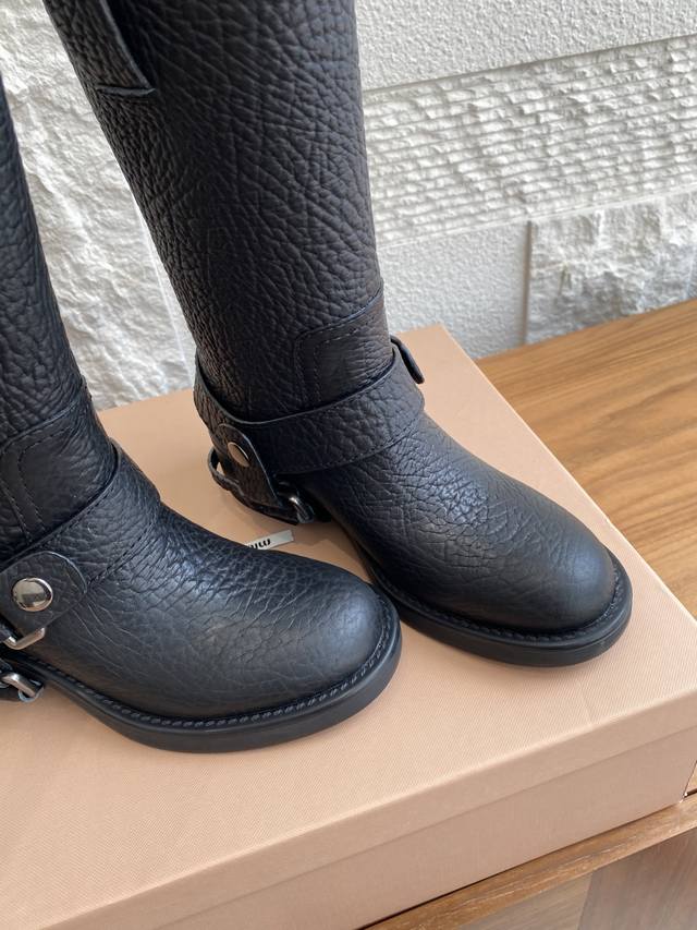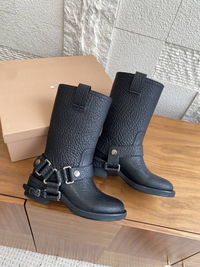 Miu Miu 25Ss Autumn/Winter New Retro Round Toe Thick Sole Riding Boots Motorcycle Boots