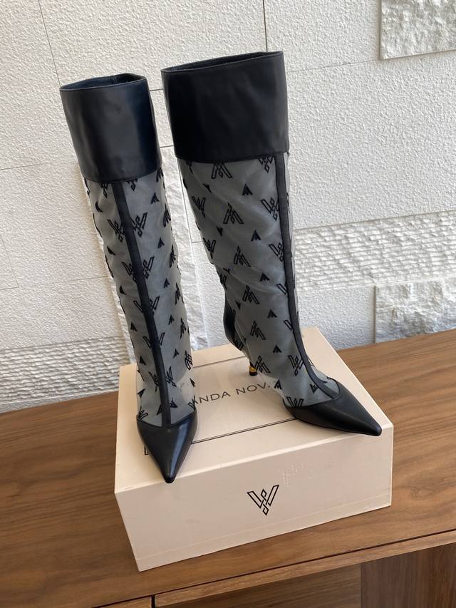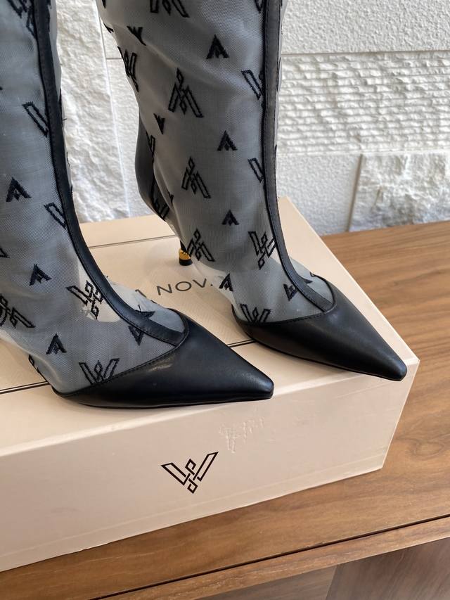 Vanda Novak pointed toe high-heel sandals, unique design creates a brand new style, the breathability of the mesh upper paired with full laces reveals wild charm, a high-end shoe series, height-increasing, slimming, and figure-flattering, with high-quality craftsmanship.