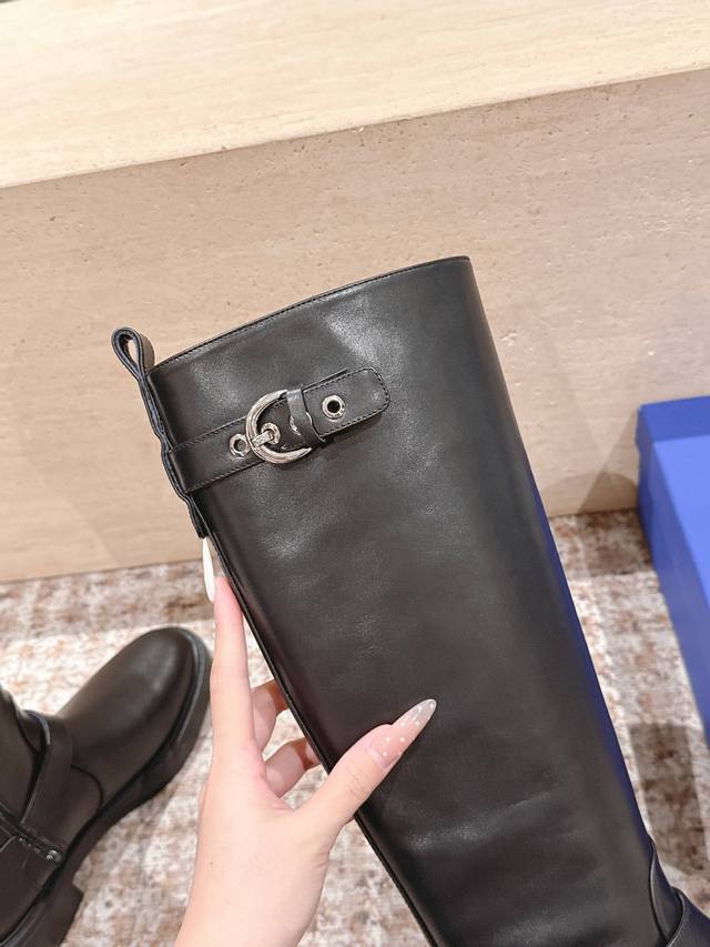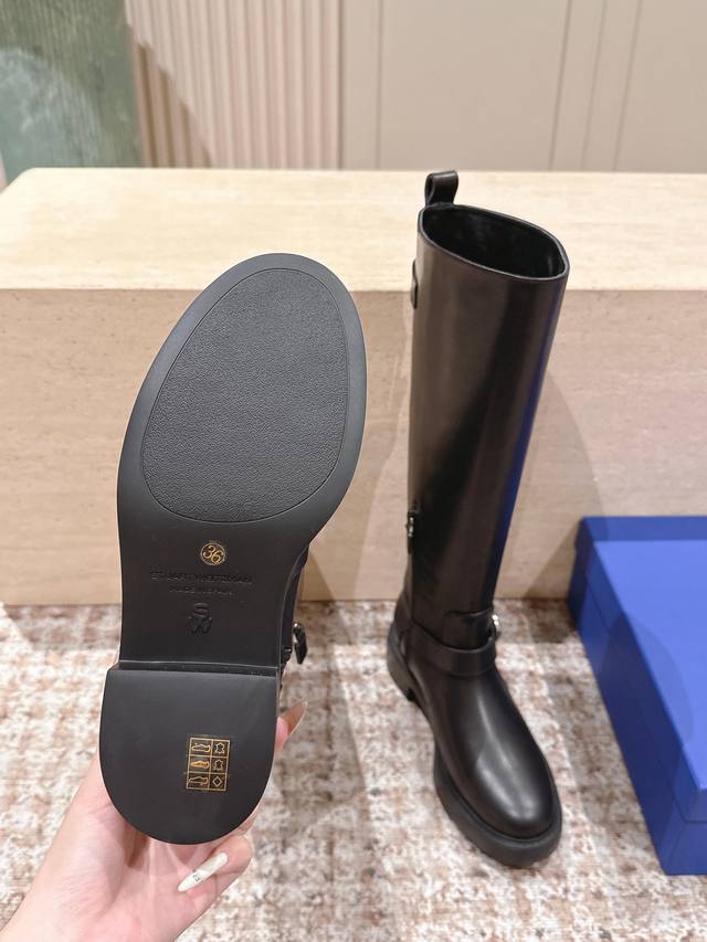 Top Version: Stuartweitzma* Sw5050 Round Toe Tall Riding Boots DDD Made of smooth leather, with a delicate texture and glossy finish, available in classic dark brown and black tones, versatile in style and highlighting quality. DDD The round toe design conforms to the foot's contours, providing comfortable wear and making the foot appear more rounded; the low, chunky heel design adds a touch of stability while ensuring comfort. Unique details on the boot shaft enhance the shoe's recognizability. DDD Material: Cowhide DDD Lining: Sheepskin DDD Outsole: Ip foam sole DDD Size: 35-40 Size 40 is custom-made and non-refundable DDD