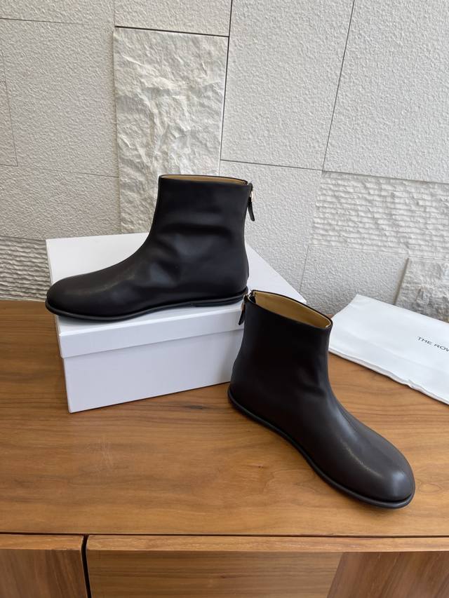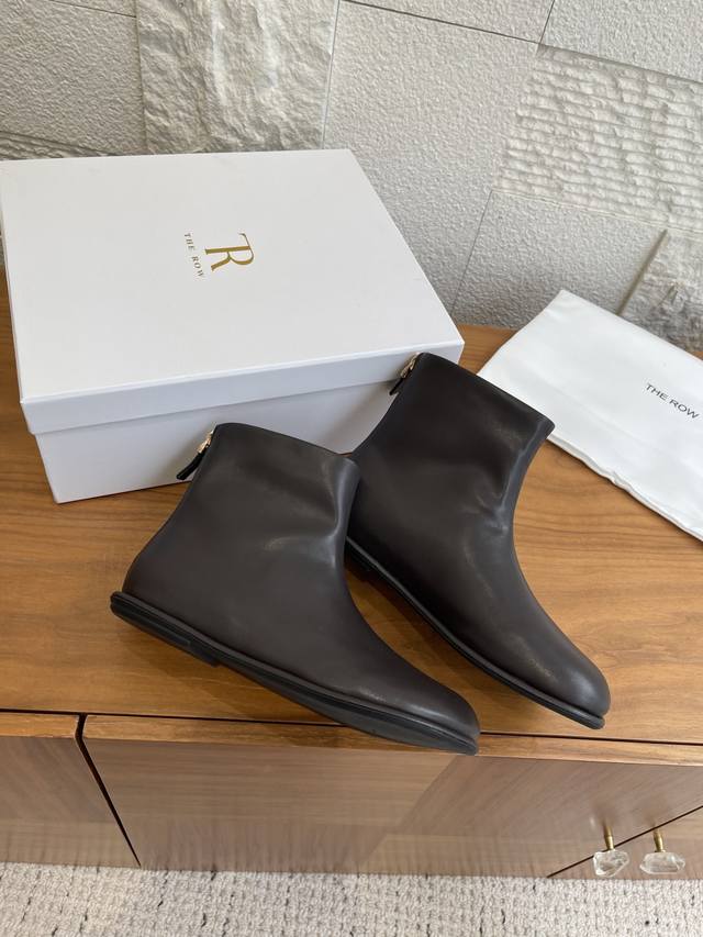 Top Version: DDD The Row 2025 Autumn/Winter New Minimalist Flat Boots with Back Zipper Ankle Boots DDD The Row ankle boots let your sophistication grow from your feet. The classic black and brown color scheme is a timeless fashion formula: paired with wide-leg suit pants, instantly switch to a "leading lady" aura; paired with a flowing knit skirt, it exudes a relaxed French vibe; even when worn with jeans and a sweatshirt, it injects "understated elegance" into everyday life. Preferring slow luxury in a fast-paced world, upholding authentic aesthetics amidst fashion trends. DDD Fabric: Imported calfskin DDD Lining: Imported cowhide DDD Outsole: Original molded rubber outsole DDD Size: 35-41 40 41 Custom orders are non-refundable DDD