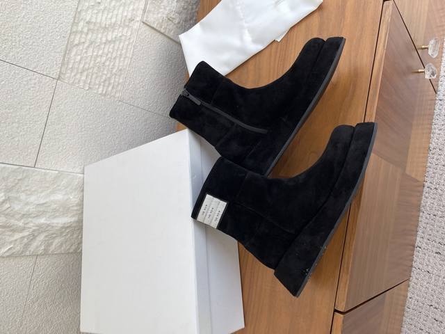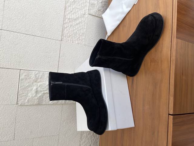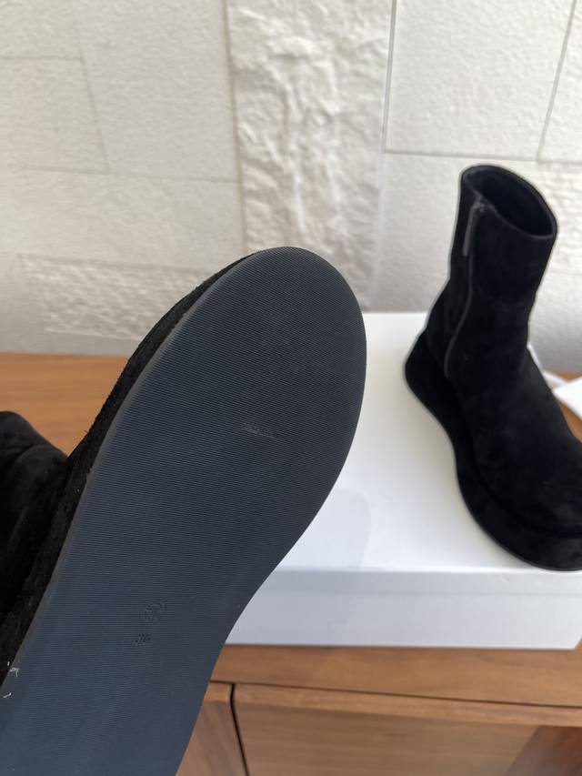 The Row boots feature a rounded, comfortable toe design, providing ample space for your feet and offering a stylish and comfortable fit. The spliced upper structure accentuates slimmer leg lines. They're so comfortable you won't want to take them off! They pair perfectly with jeans, trousers, and skirts. Material: Original imported suede; Lining: Imported sheepskin; Outsole: Original molded sole + rubber soleplate. Size: 35-41 (40-41 are custom-made and non-refundable).