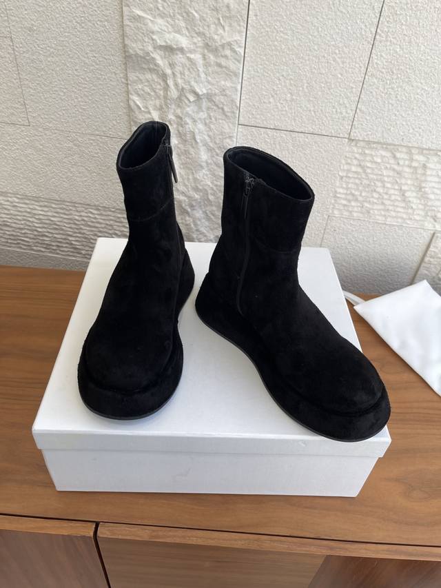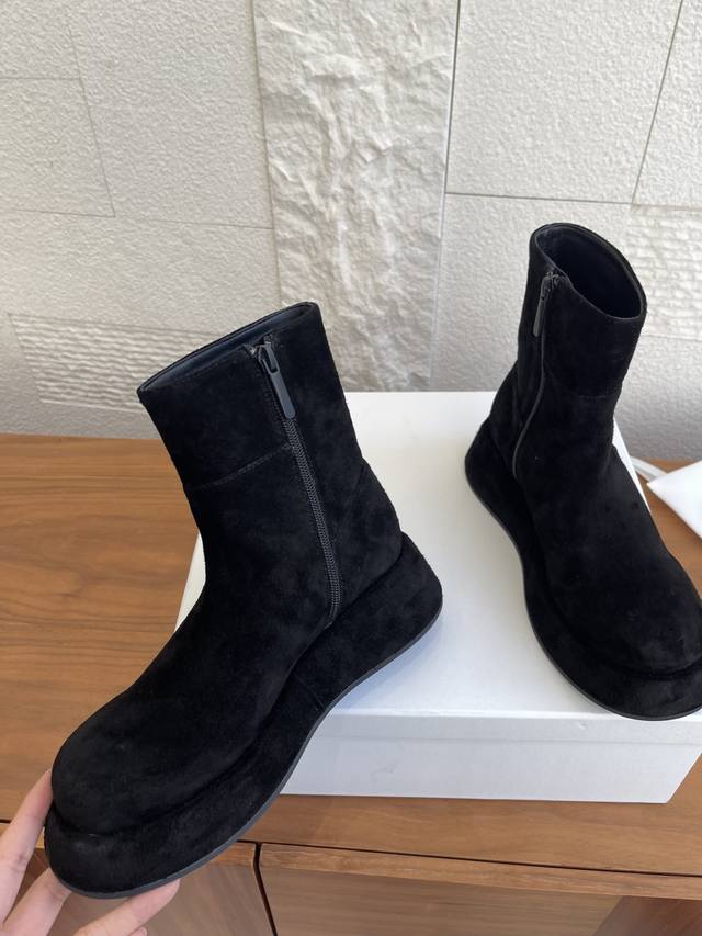 The Row 25Ss Autumn/Winter New Round Toe Thick Sole Side Zipper Chelsea Boots. These