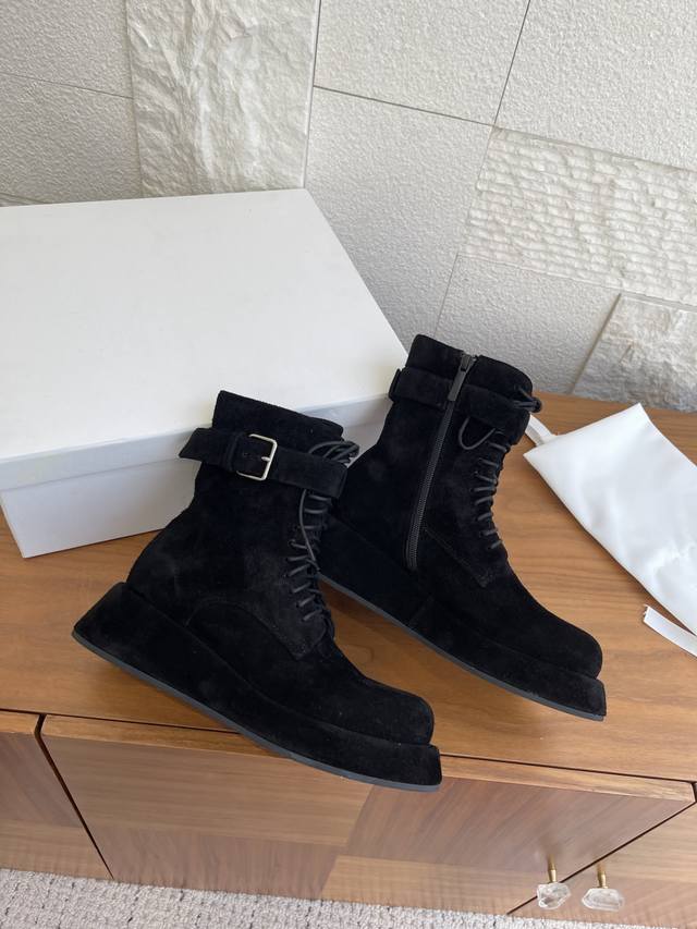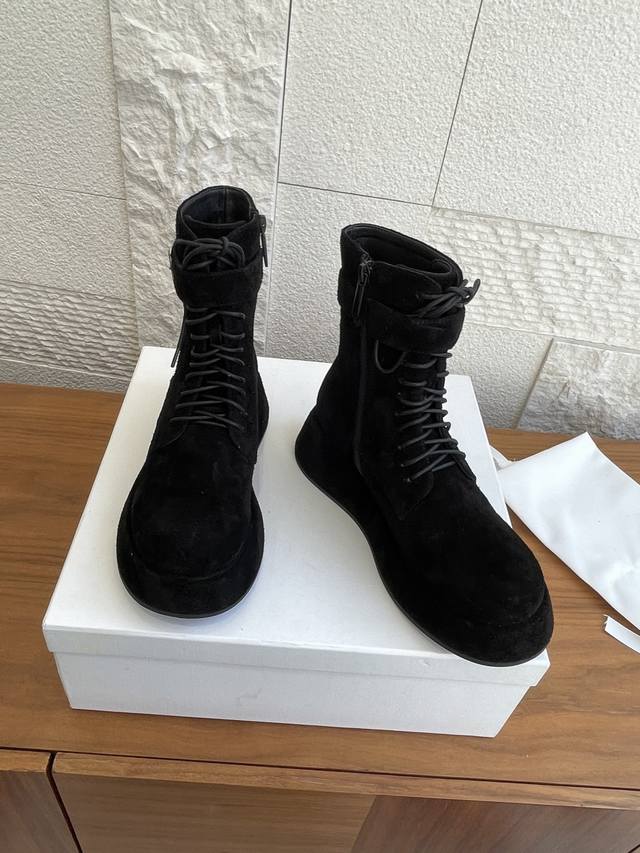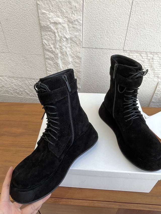 The Row 25Ss Autumn/Winter New Round Toe Thick Sole Side Zipper Lace-up Chelsea Boots. These