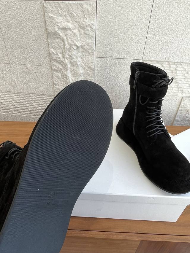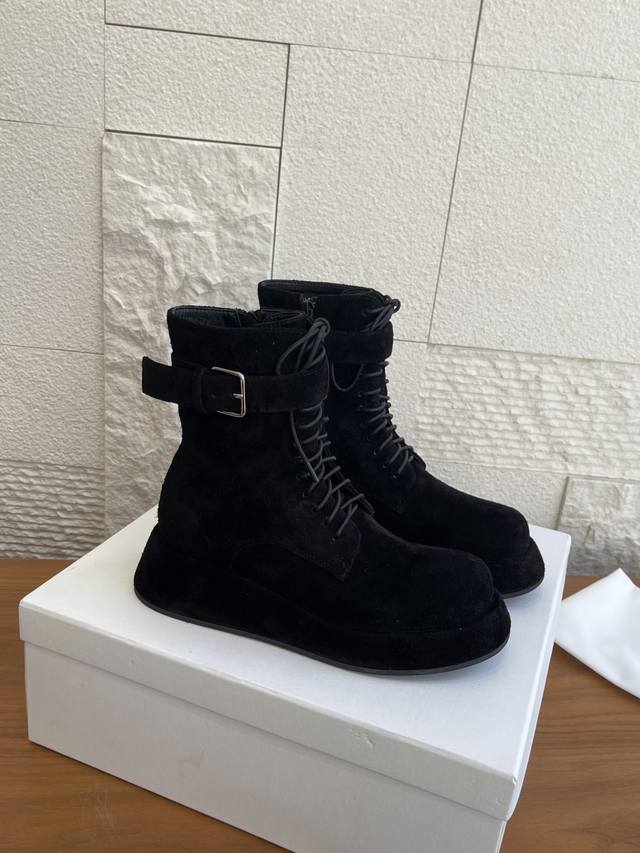 The Row boots feature a rounded, comfortable toe design, providing ample space for your feet and offering a stylish and comfortable fit. The lace-up design accentuates slimmer leg lines. They're so comfortable you won't want to take them off! They pair perfectly with jeans, trousers, and skirts. Material: Original Imported Suede; Lining: Imported Sheepskin; Outsole: Original Mold Base + Rubber Sole; Size: 35-41 (40-41 are custom-made and non-refundable).