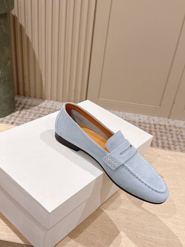 Top Version: Thero *25S Early Autumn New Series Minimalist Square Toe Casual Loafers DDD The square outline of the toe is not a simple right angle cut, but a precisely calculated, slightly blunt or subtly curved three-dimensional square toe. This requires extremely high standards for the extensibility and shaping of the leather to ensure that the toe maintains its crisp shape after wearing, rather than collapsing and deforming. DDD These minimalist square toe flat loafers are a model of modernist design philosophy combined with traditional shoemaking craftsmanship. Through the highly architectural square toe outline, the clean and unadorned upper, and the extreme pursuit of materials and details, they successfully create a timeless style that transcends seasons and trends. More than just a pair of shoes, they are a style asset worth investing in, symbolizing a modern attitude of understanding essence and confident composure. Material: Sheepskin; Lining: Cow lining; Outsole: Italian imported genuine leather; Sizes: 35-39; Size 40 is custom-made and non-refundable.