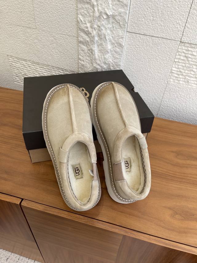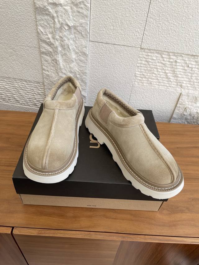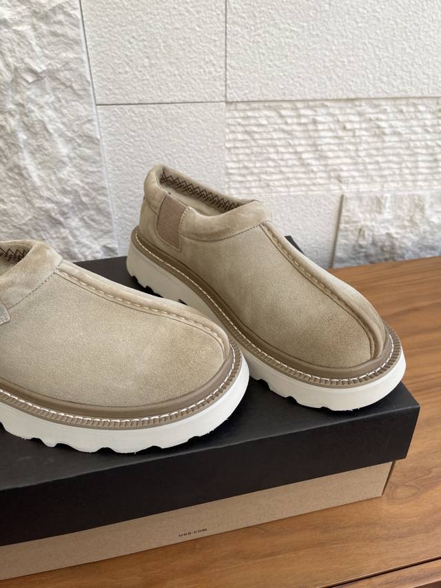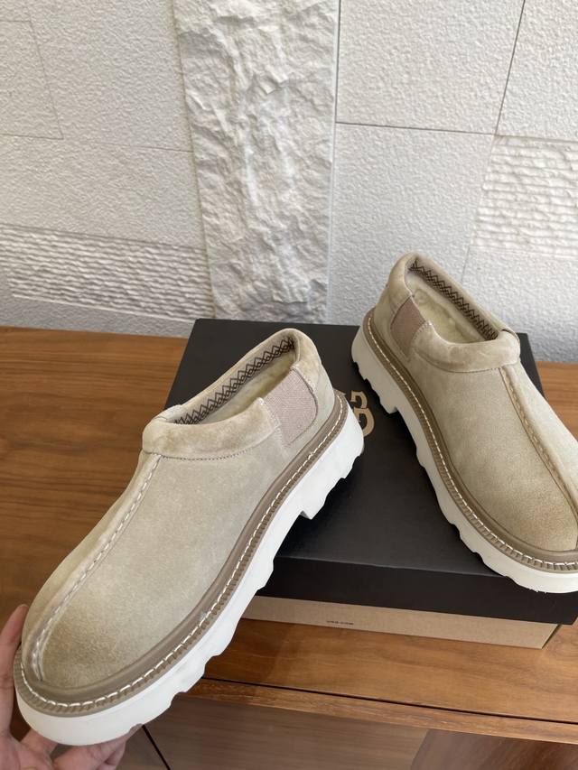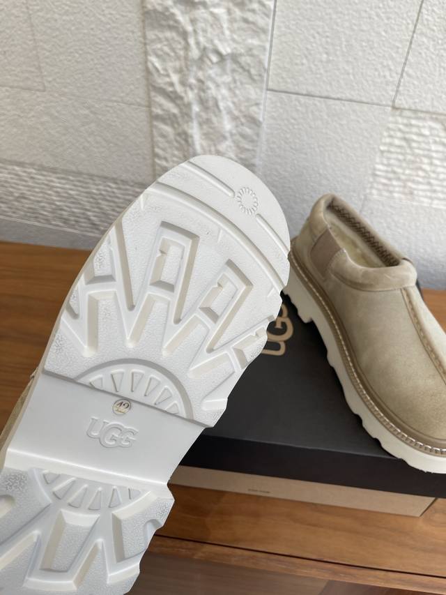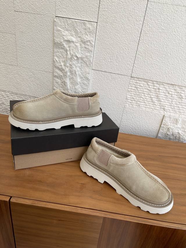 Ugg 2025 Autumn New Unisex Tasman Lug Slip-on Shoes. This unisex Tasman Lug slip-on shoe is easy to put on and take off, offering a comfortable style. It features a split cowhide suede upper, an approximately 17mm Uggplush lining, and an insole, combining functionality and warmth. The EVA outsole with a non-slip spiderweb rubber sole provides excellent grip. Material: Imported cowhide suede; Lining: Sheepskin; Outsole: Original EVA foam outsole. Size: Women's 35-40 (40 is custom-made and non-refundable); Men's 39-45 (45 is custom-made and non-refundable).